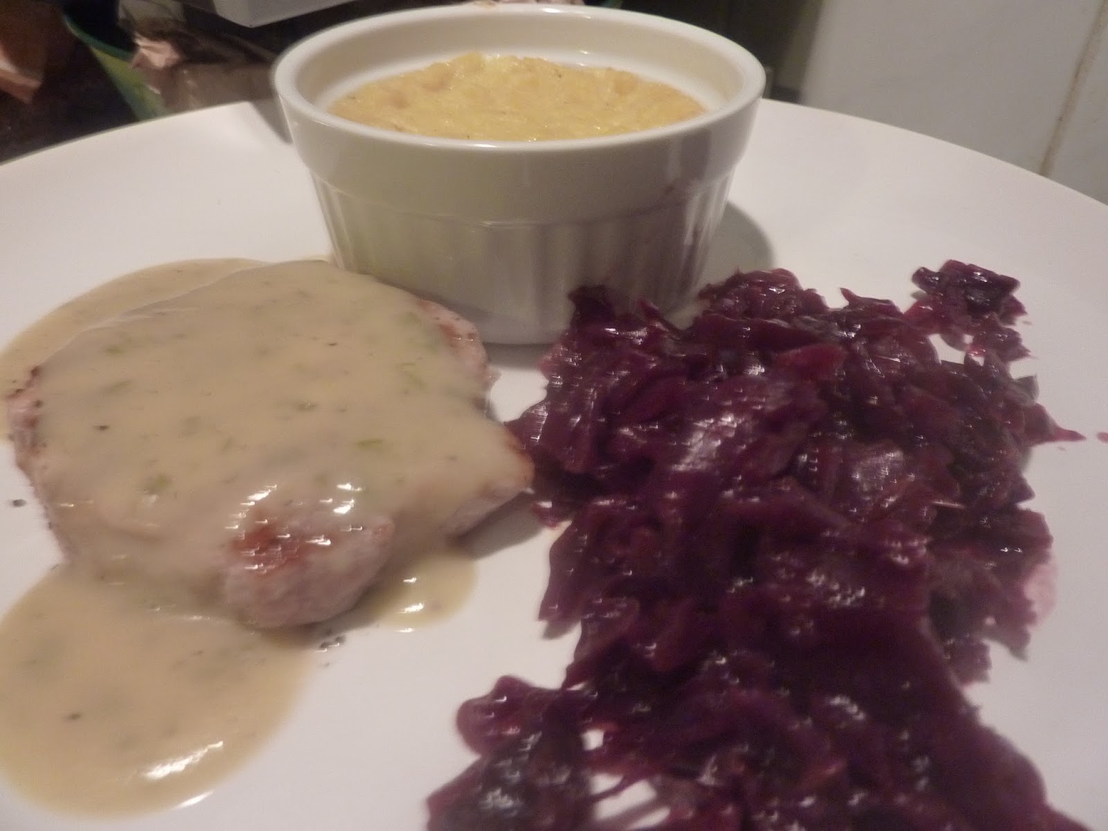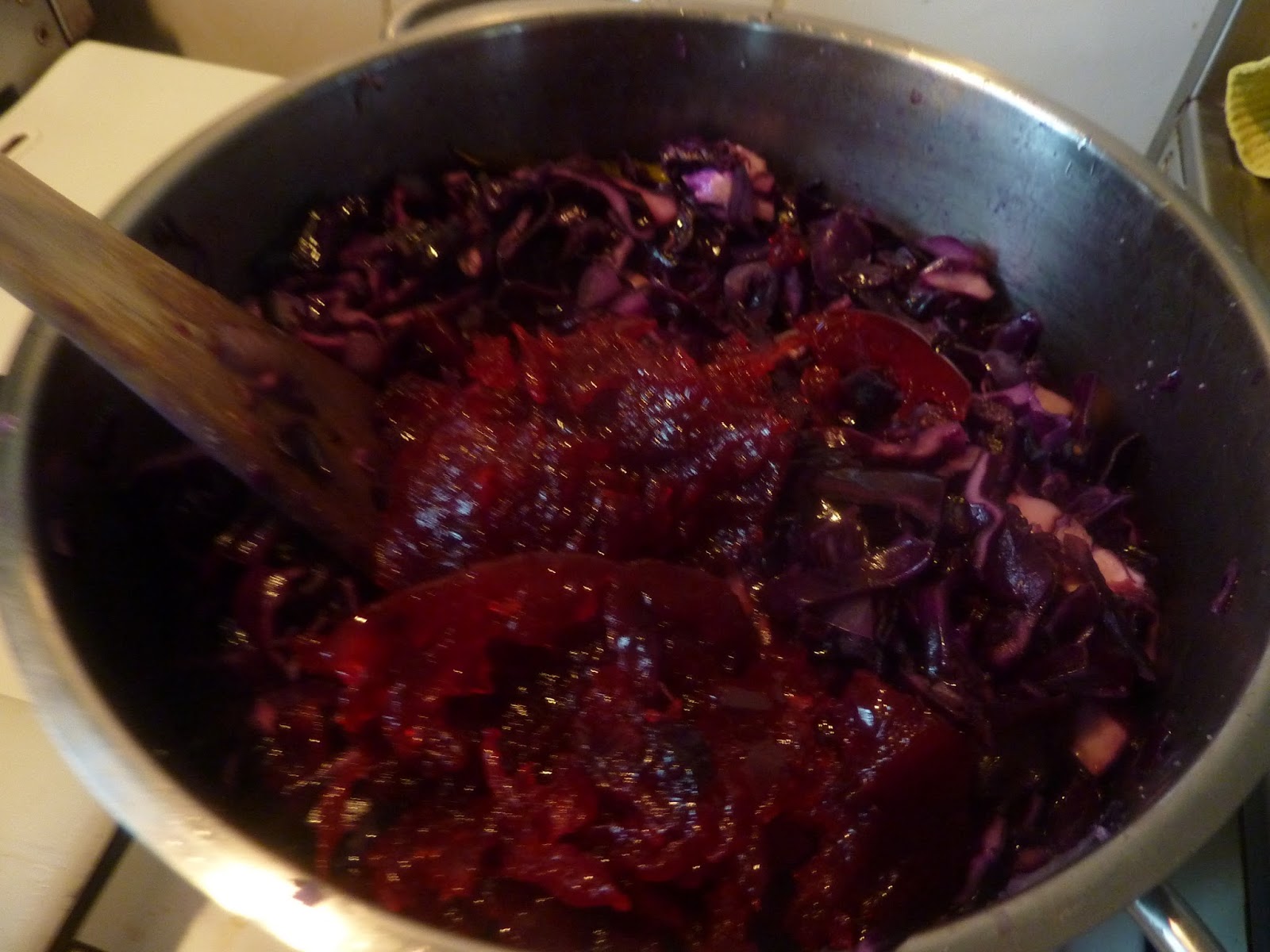 Das was von den Cranberries noch vom Weihnachtsessen übrig ist, kommt auch zum Rotkohl. Deswegen habe ich auch keinen separaten Zucker in den Rotkohl gemacht, weil die Cranberries und die Birnen Zucker satt verbastelt haben.