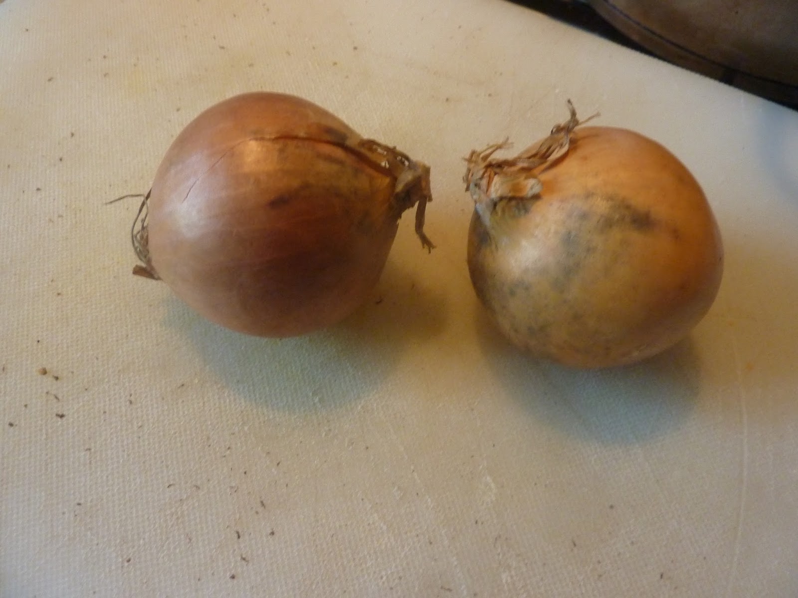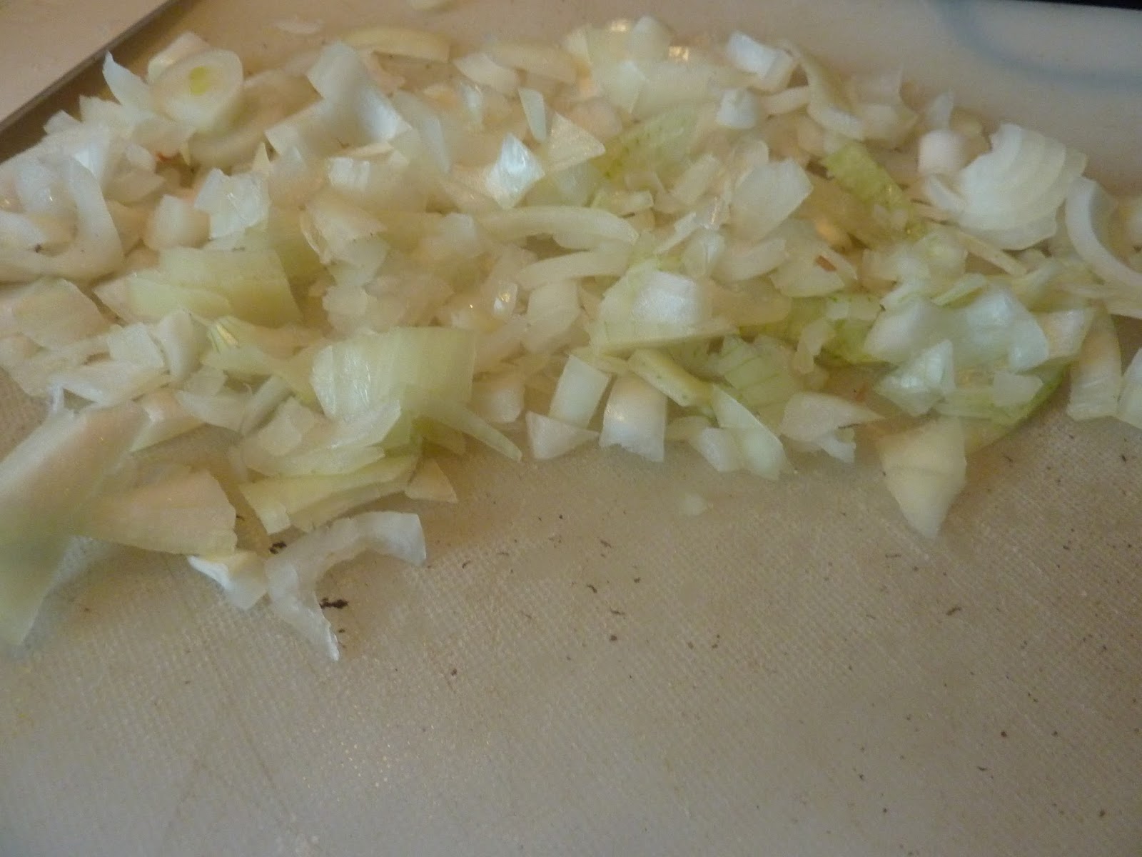 Zwei Zwiebeln von der Schale befreien und zerkleinern.