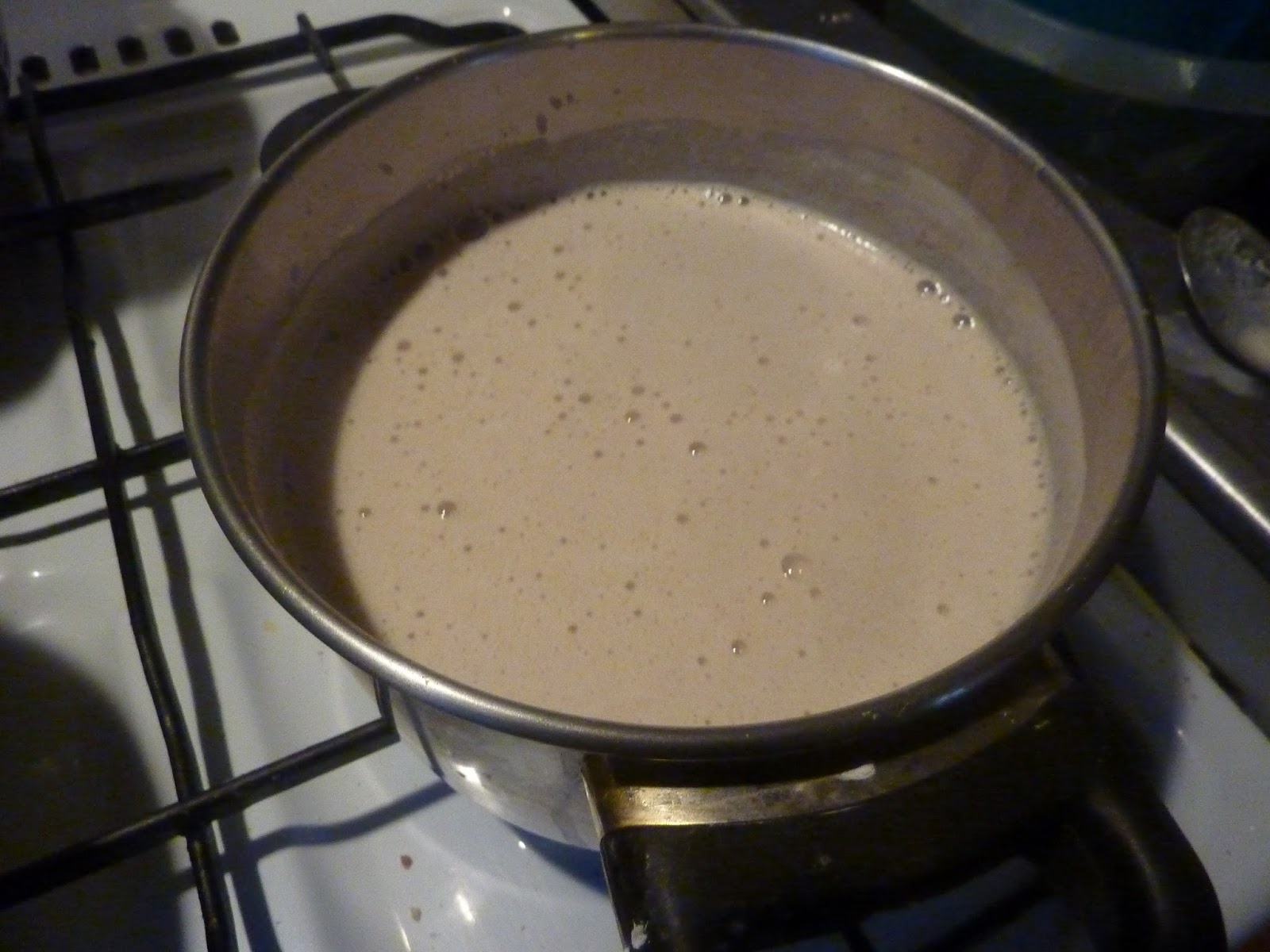 Wenn die Milch im Topf hochkocht, den Topf vom Herd ziehen, damit nichts überkocht.