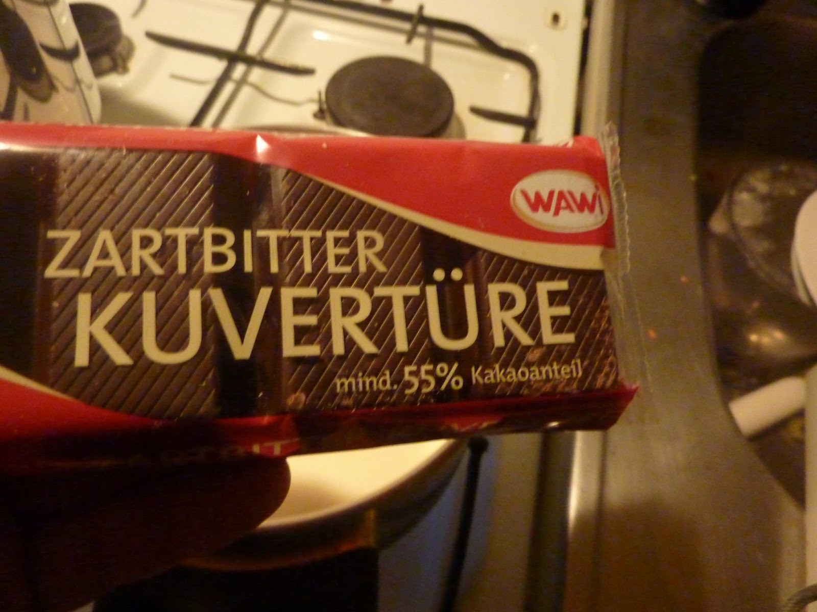 Kuvertüre im Wasserbad schmelzen. Mir reichten 50 Gramm, wer mehr nehmen will, nimmt eben mehr.
