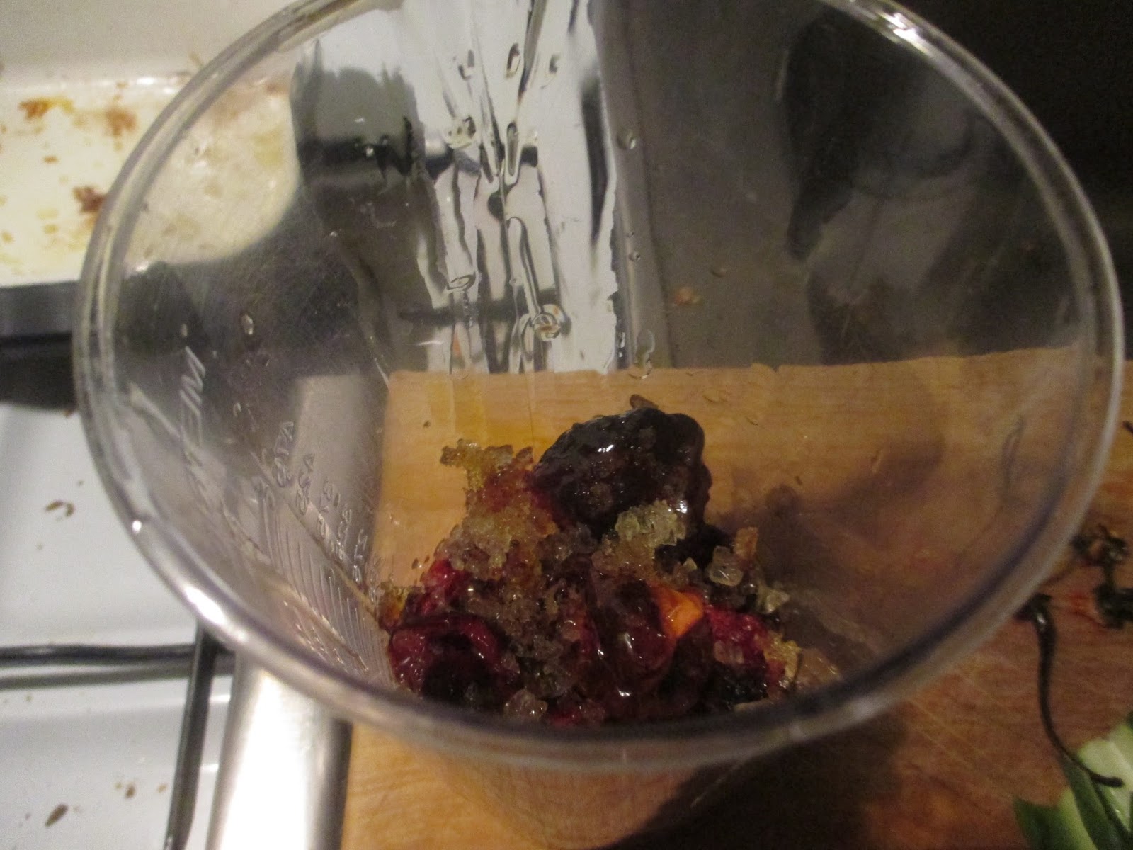 Das Öl und das was die Peperoni beim Garen abgegeben haben, in den Mixbecher kippen.