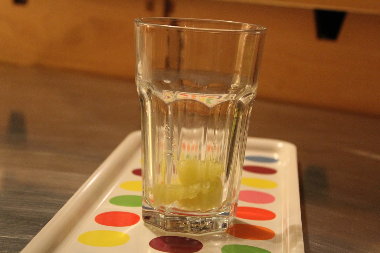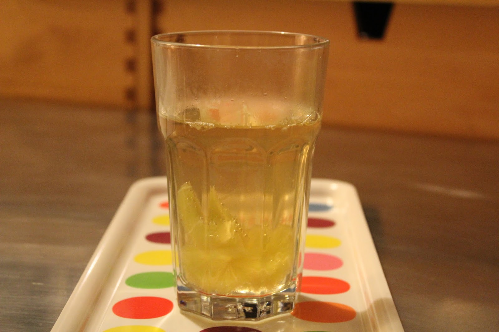 Das was an Fruchtfleisch an der Schale hängt, presst man einfach über dem Glas, oder dem Topf mit dem Tee aus.