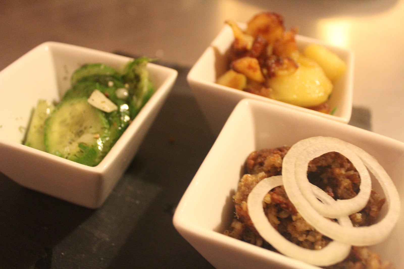 Ich ärgere mich jedenfalls schon mal wieder reichlich über mich selbst, dass ich mein Vorurteil so lange gepflegt habe und mir diese Leckerei entgehen lassen habe. Das kommt, wenn man es nicht selbst mit Liebe zubereitet. Das ist so ein geiles Essen. Knusprig, fettige Grützwurst, die leckeren Bratkartoffeln und der Kick Frische aus dem Gurkensalat. Ich habe es jetzt nicht ausprobiert, aber Apfelmus soll dazu auch toll schmecken.