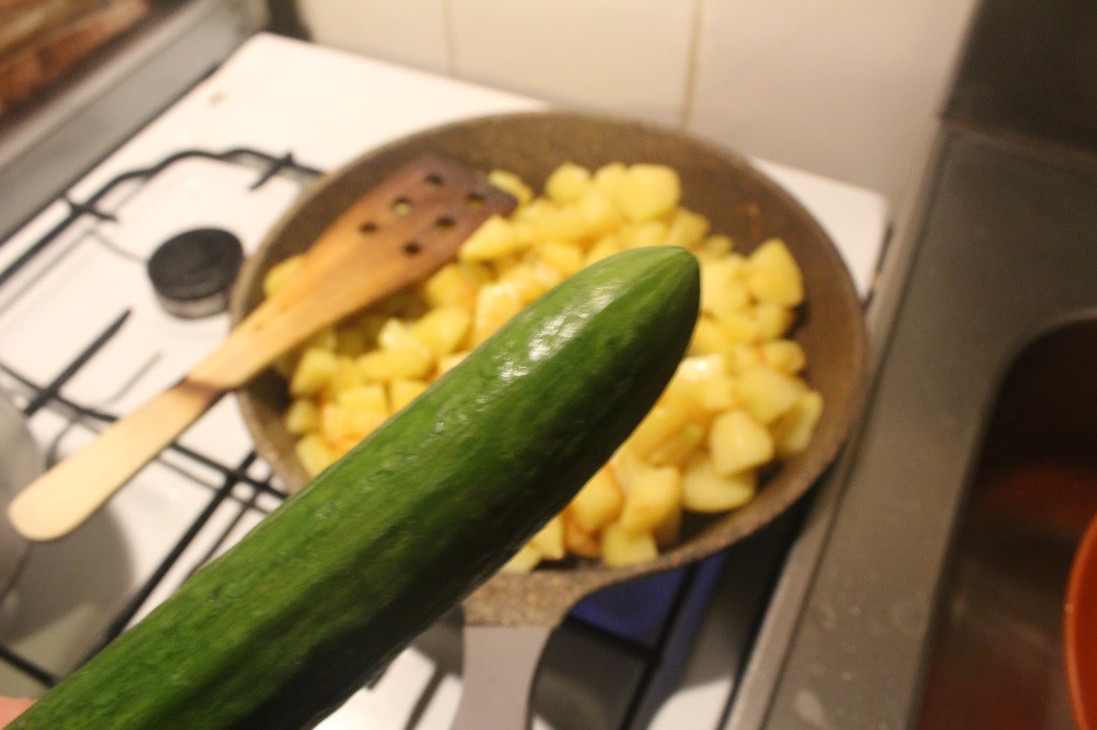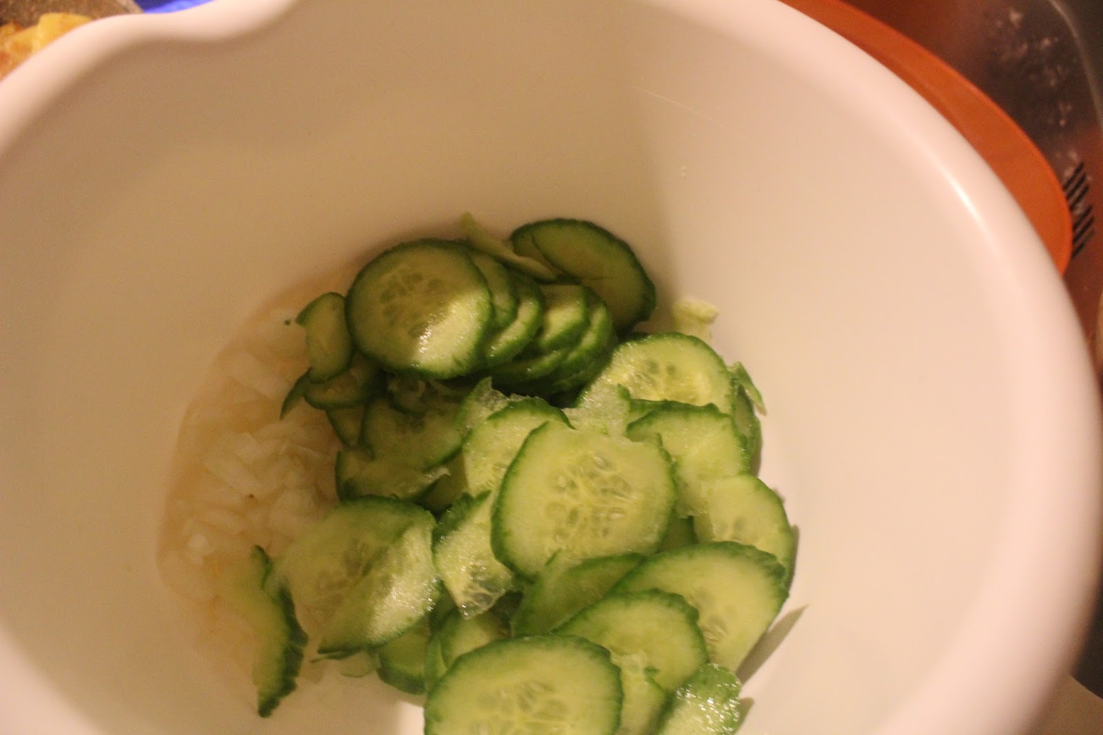 Zwischenzeitlich schnell noch eine halbe Gurke in dünne Scheiben hobeln