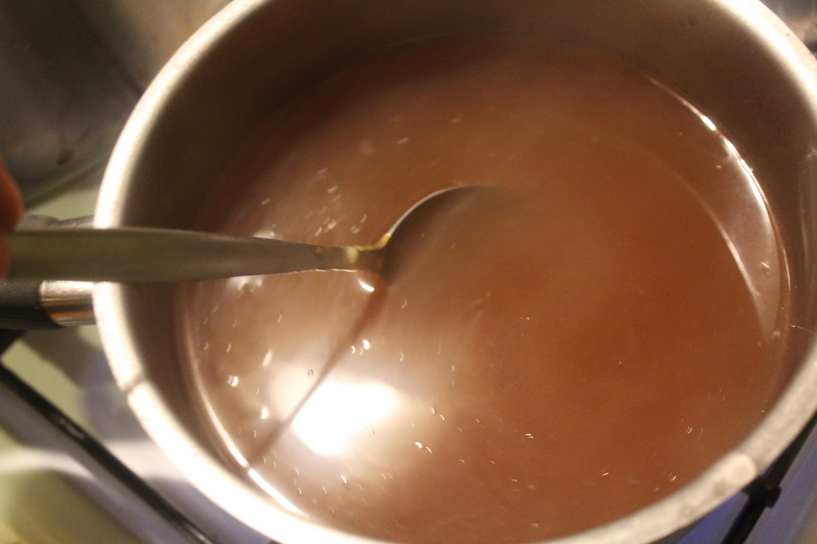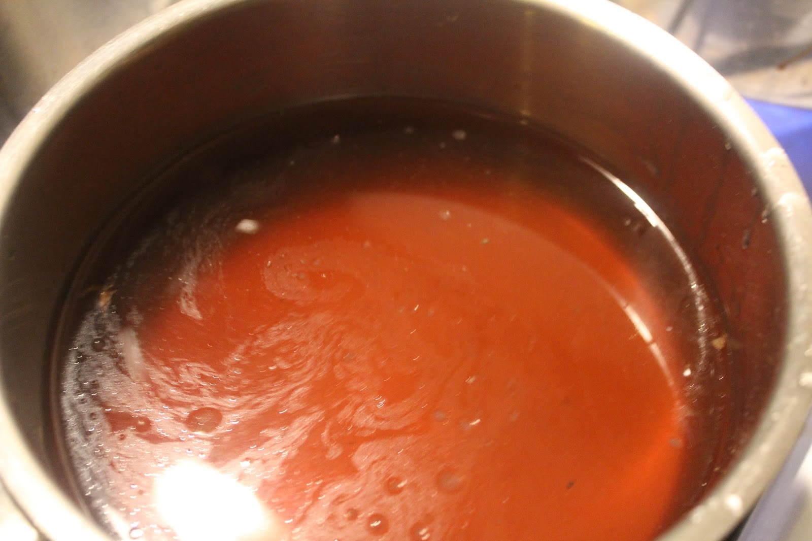 500 Milliliter Brühe in einen kleinen Topf geben und erhitzen. Schnitzel geben keine gute Soßenbasis, also müssen wir uns damit ein wenig behelfen.
