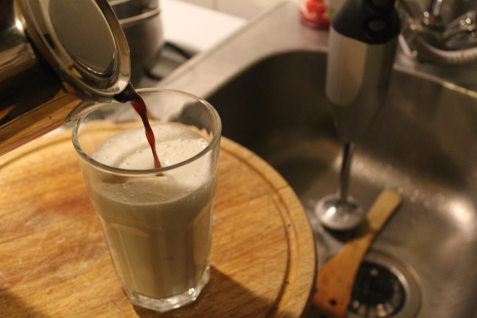 Die Dame des Hauses fragt mich jetzt jeden Abend, ob sie noch mal so eine Latte macchiato haben kann. Schmeckt also und ist überhaupt nicht schwer und ohne Maschine zu machen.