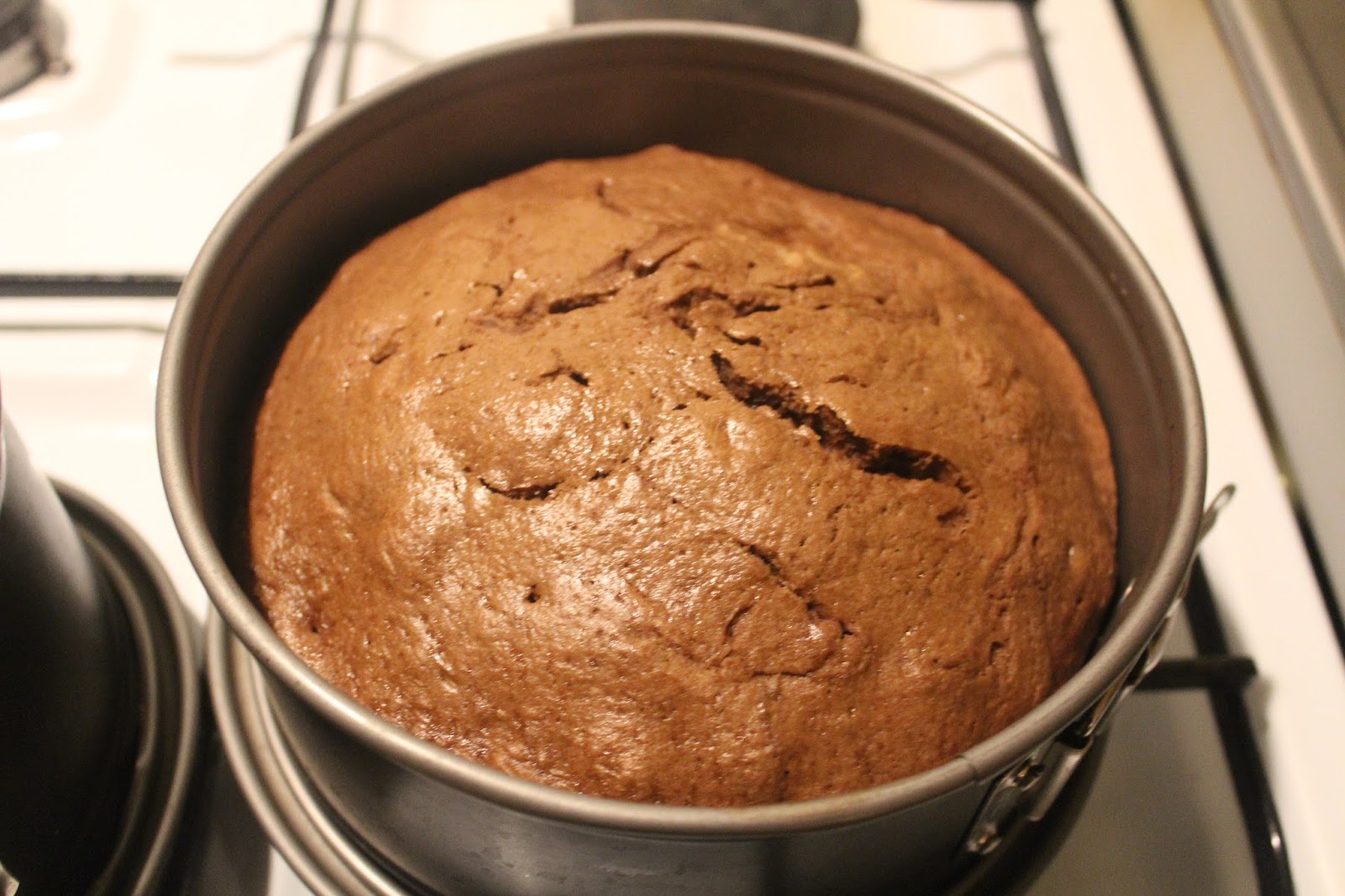 Den Kuchen lasse ich nach dem Backen auskühlen. Da der Kuchen eine Glasur bekommen soll, die auch Schokolade enthält, ist es besser, wenn der richtig ausgekühlt ist.