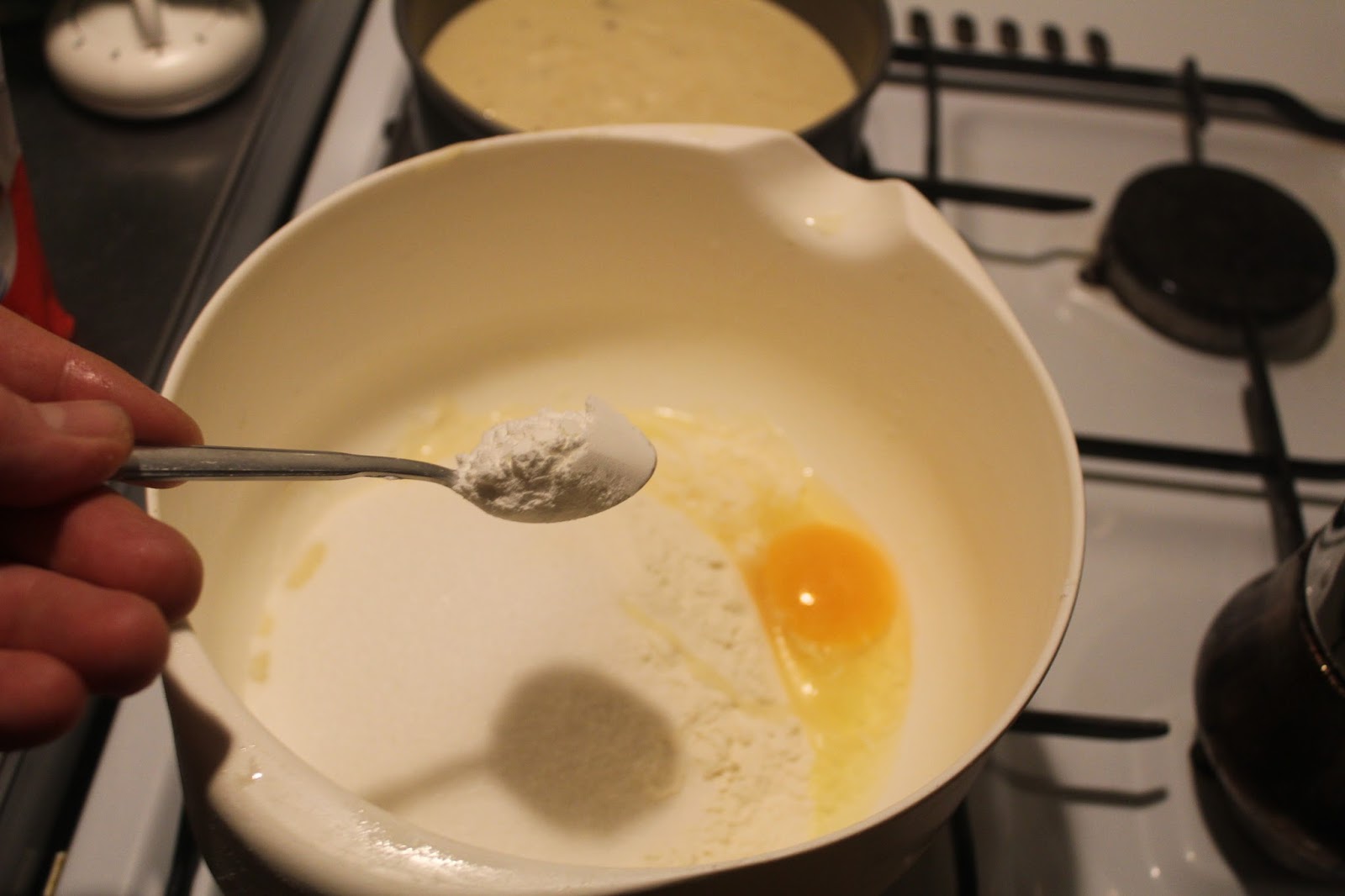 Den Teig mit einem elektrischen Rührer, oder von Hand rühren.