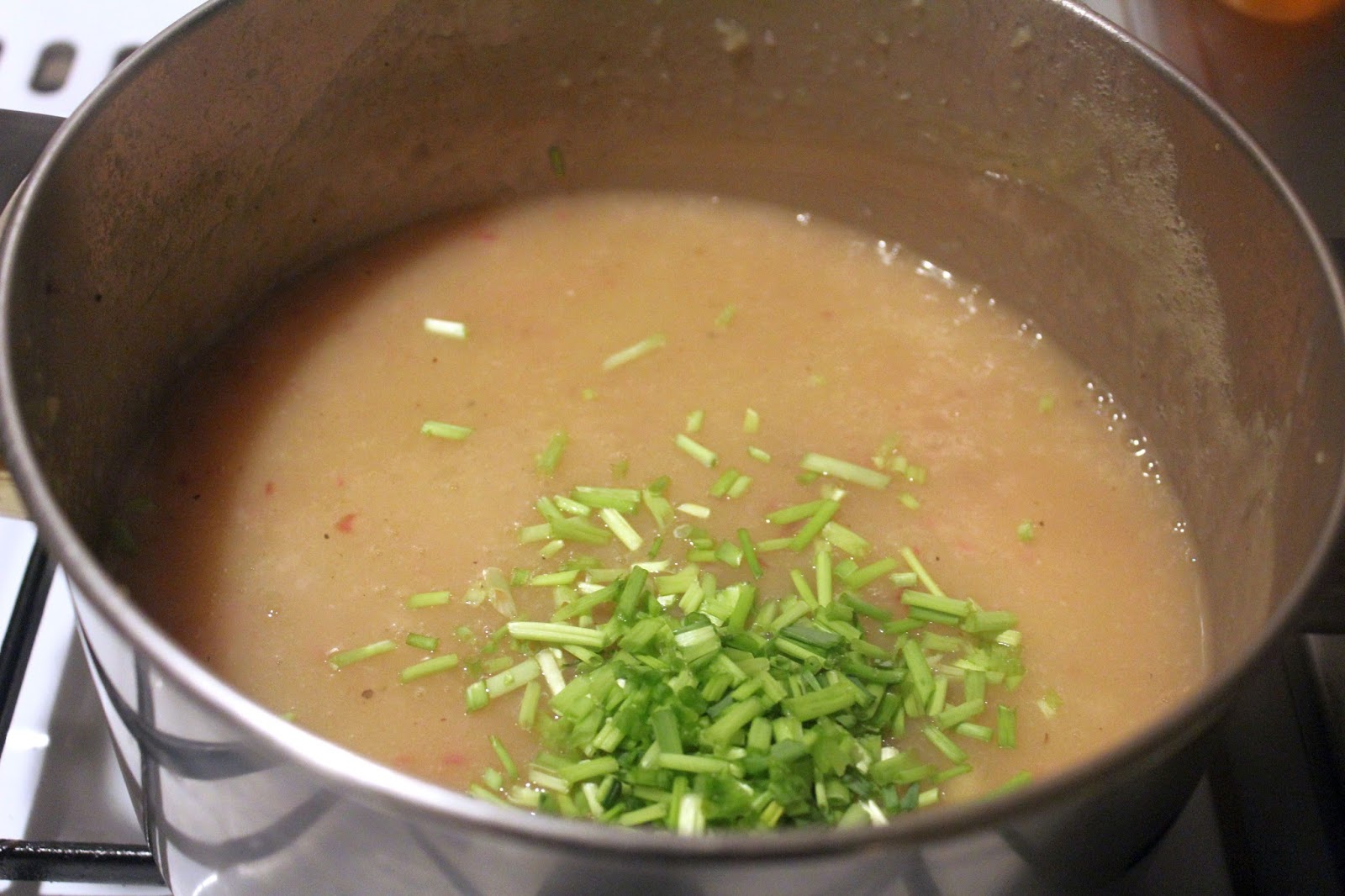 Nun noch ein bisschen Schnittlauch in die Suppe schneiden.