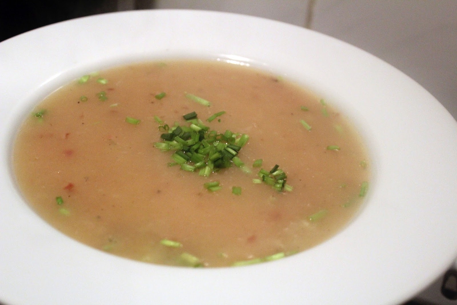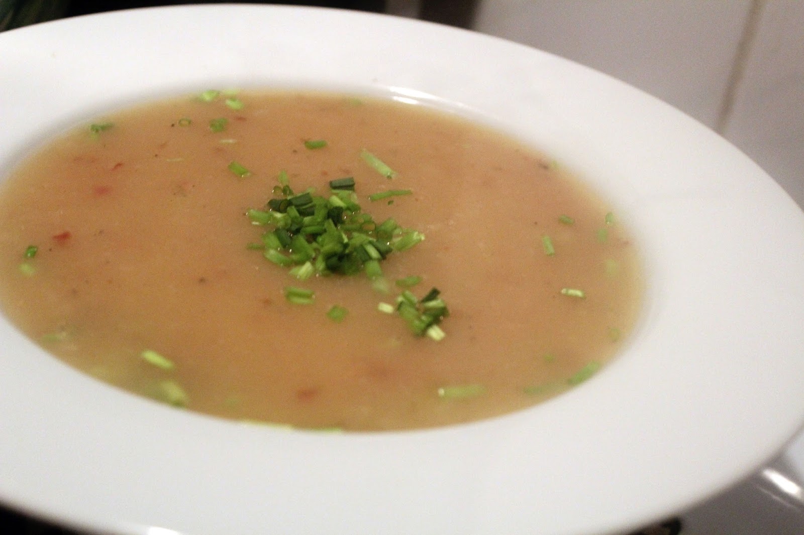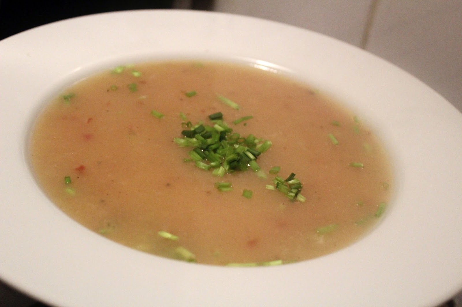 Die Suppe schmeckt sehr kräftig, sehr frisch, die Kartoffeln geben eine schöne Bindung, machen die Suppe sämig und die Limette eine angenehme Säure. Dazu wäre frisches Brot gut, wenn man sie als Hauptgericht essen würde. Als Vorspeise ist sie auch toll. Wenn man die Kartoffeln schon zur Verfügung hat, weil man schlau vorgekocht hat, dauert das keine zehn Minuten mit Erhitzen.