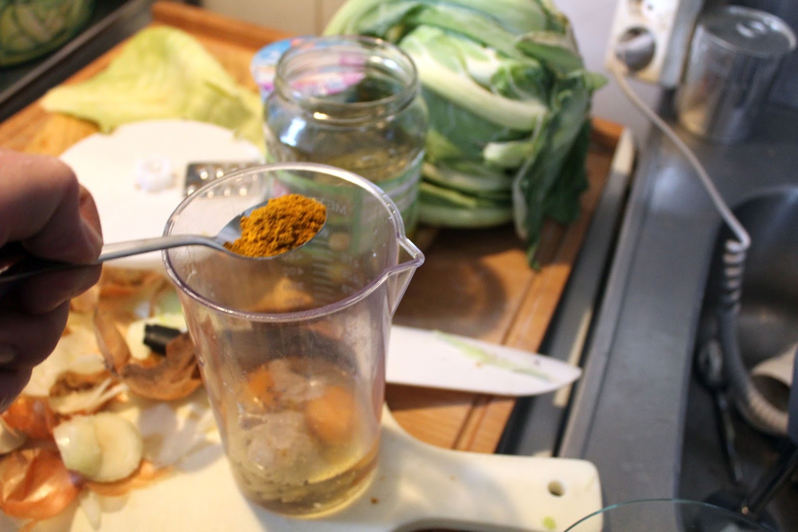 1 Teelöffel Currypulver, Salz, Pfeffer, Zucker, 1 Esslöffel Essig, 1 Spritzer Limette