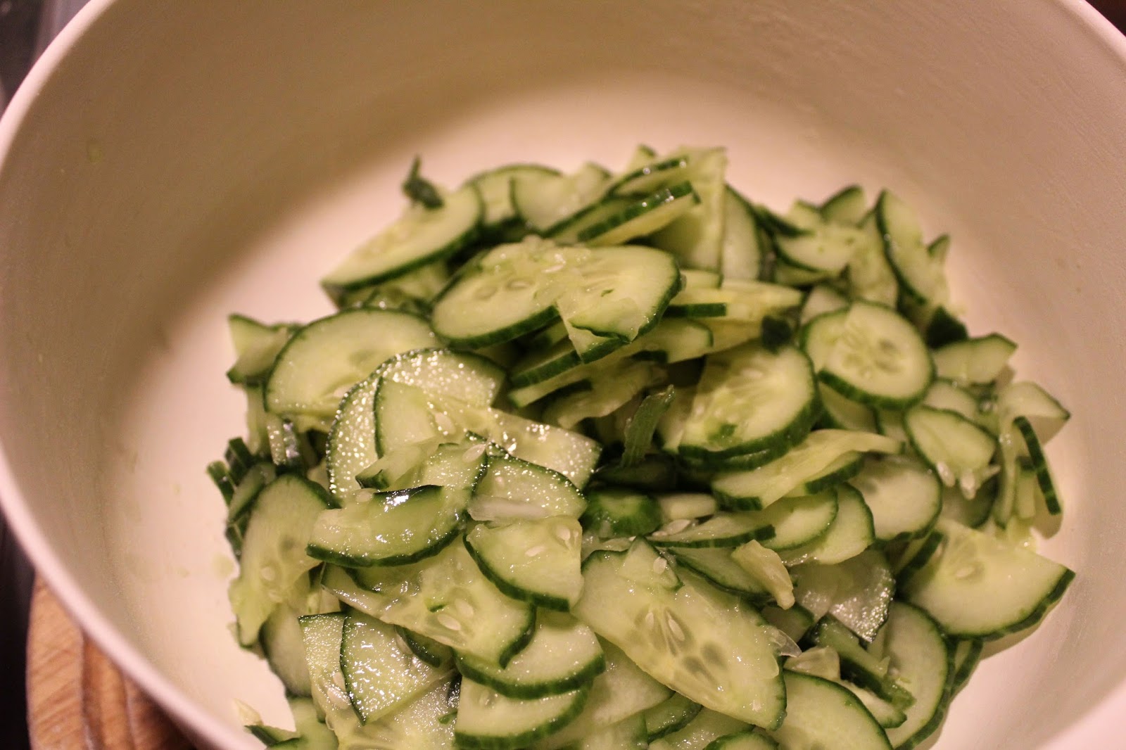 Ich habe sowas auch schon mal aus Gurken eingekocht und das war sehr lecker, ABER weil ich jetzt gerade Hotdogs aus total frischen Zutaten, vom Brötchen bis zu den Soßen gemacht habe, dachte ich mir dass ein frischer Gurkensalat dazu, die logische Konsequenz sein müsste. Das ist so ein irres Gefühl im Moment, wenn einem die Frische im Mund so komplett entgegen springt. Eigentlich müsste man zum Vergleich gleich noch so eine Industrieversion daneben liegen haben, um den Unterschied mal so richtig abfeiern zu können.