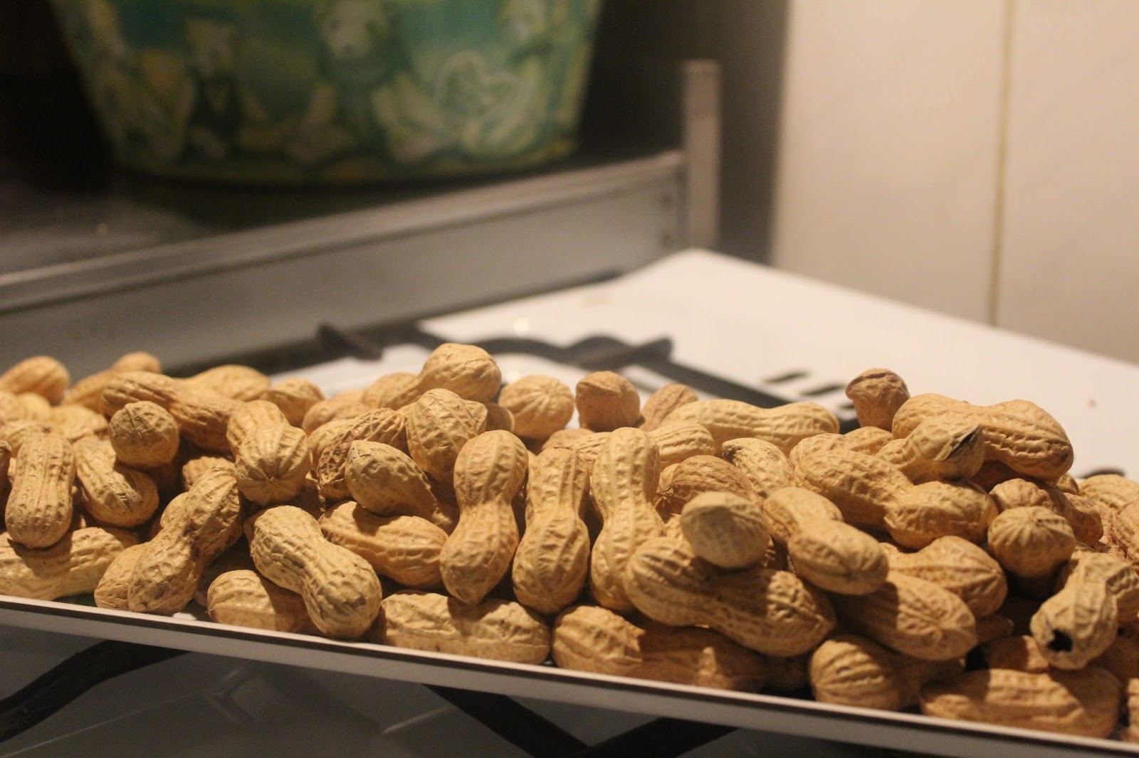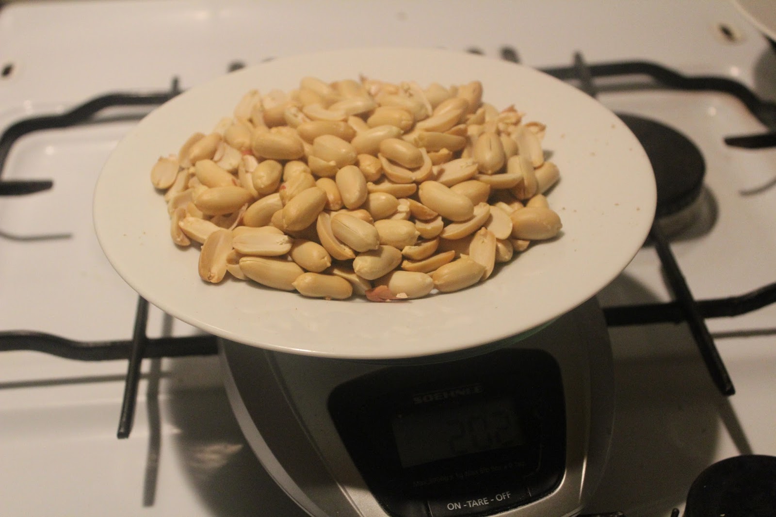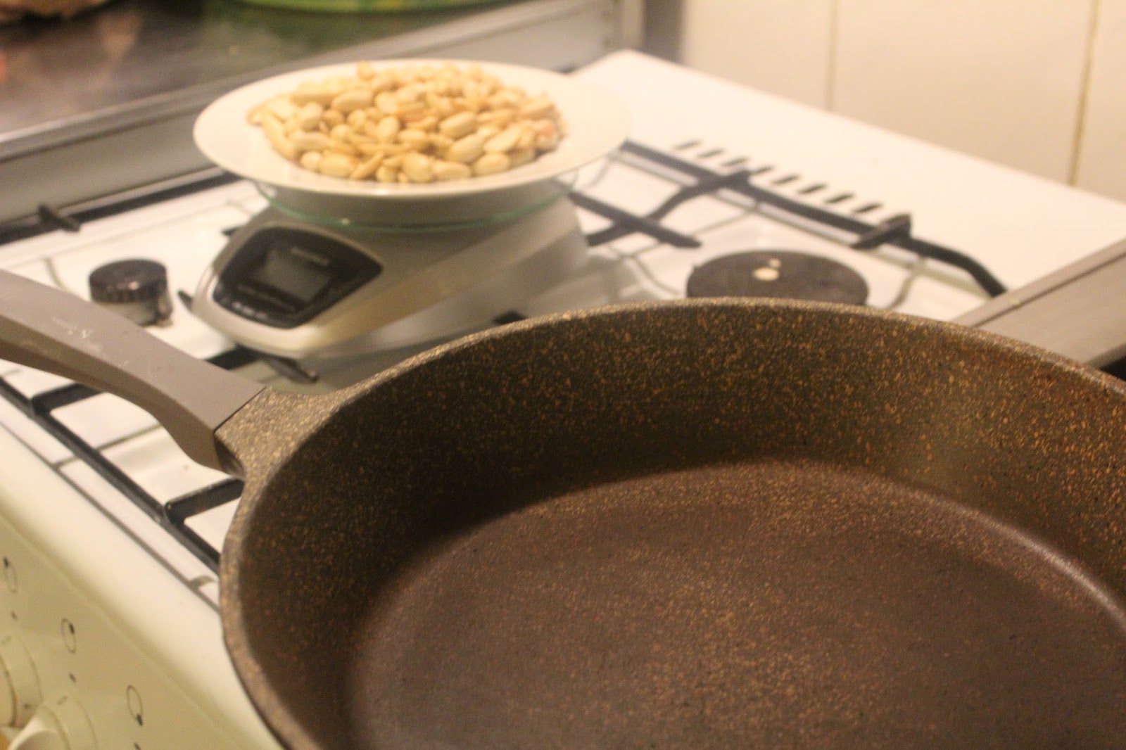 Die gerösteten Erdnüsse kommen hinterher in die Zauberette, oder irgendein anderes Küchengerät, mit dem man sie mahlen kann.