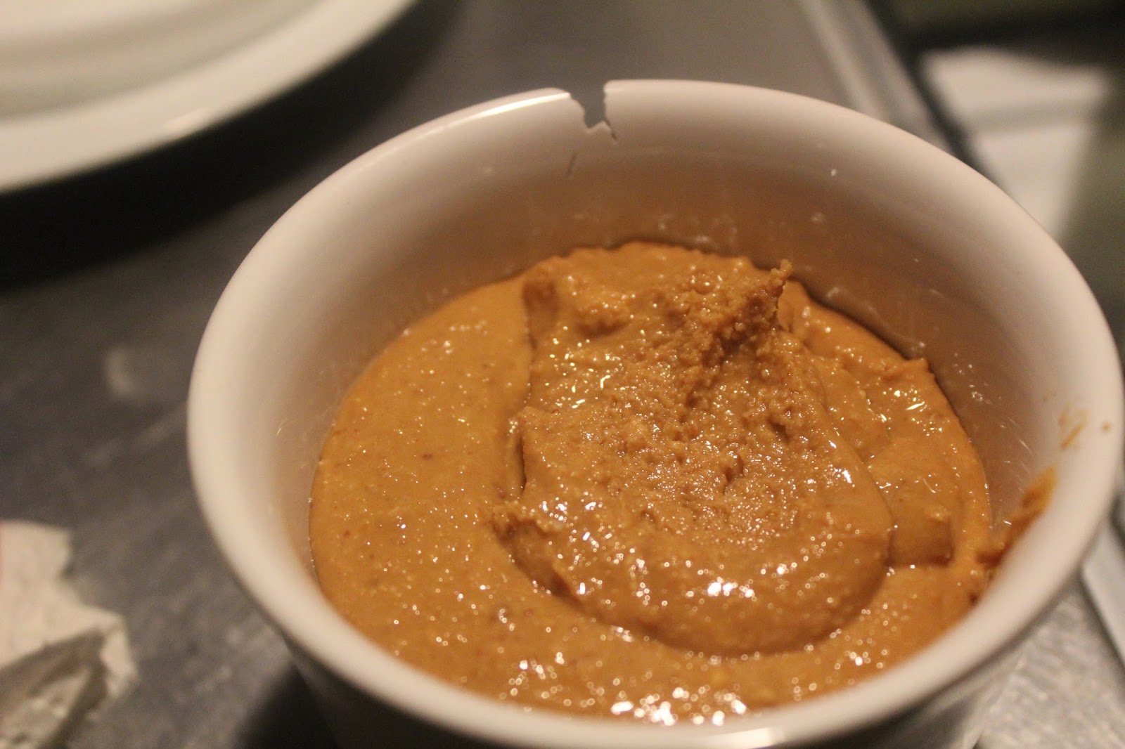 So sieht dann die fertige Erdnussbutter nach dem Zerkleinern der Erdnüsse aus. Einfach nur zermahlen und dann immer weiter draufhalten, dann wird das von alleine so cremig.