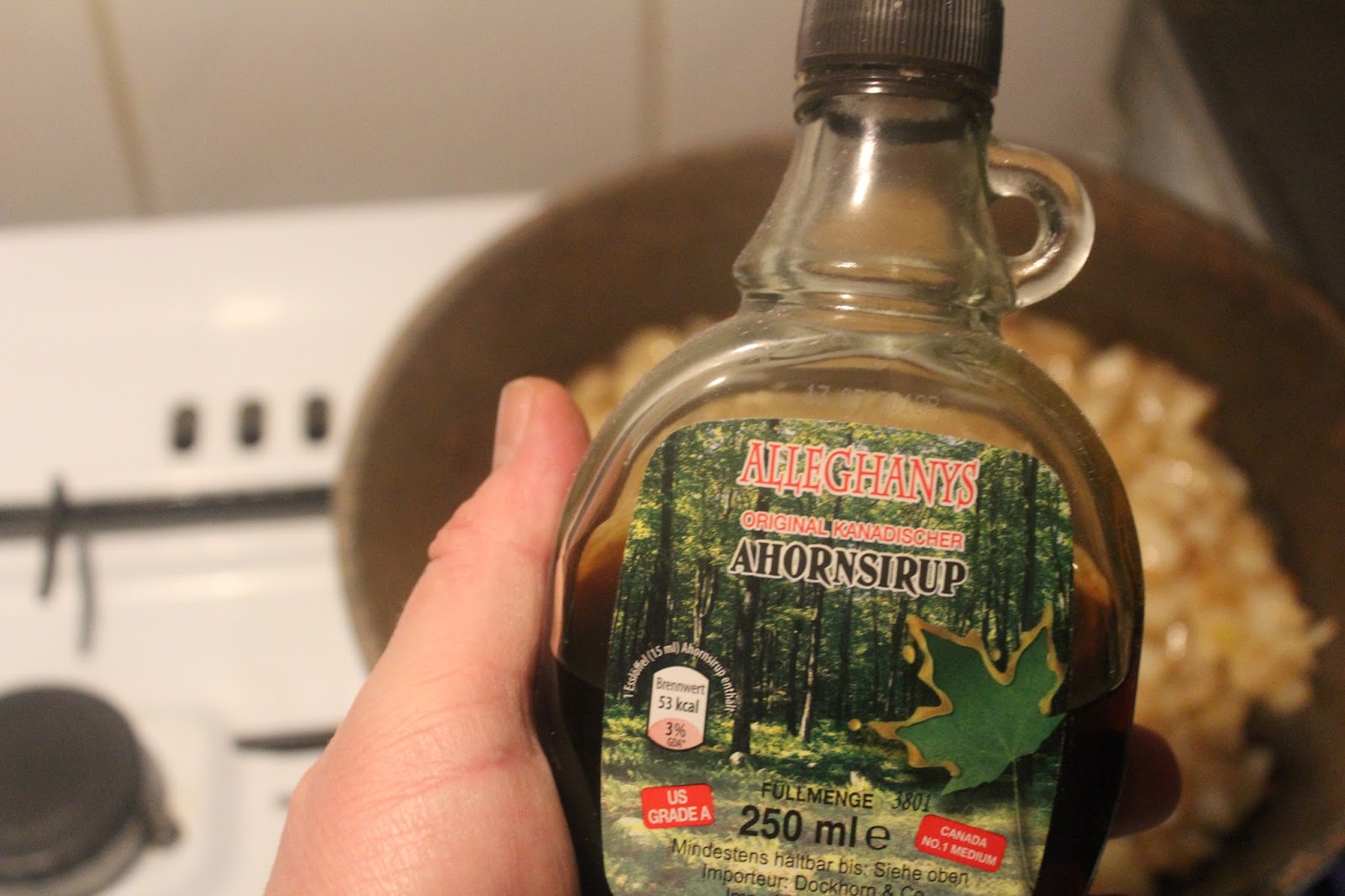 Nun kommt die Süße. Ich habe keinen extra Zucker und anderes Gedöns zum Süßen verwendet, sondern pures Ahornsirup