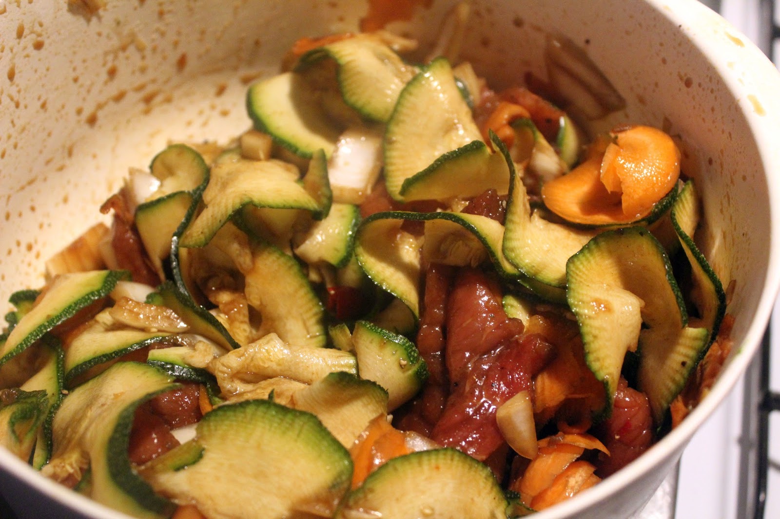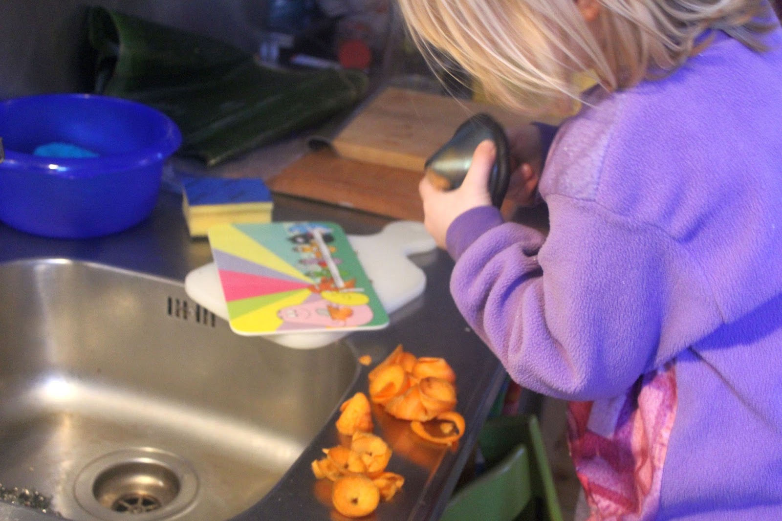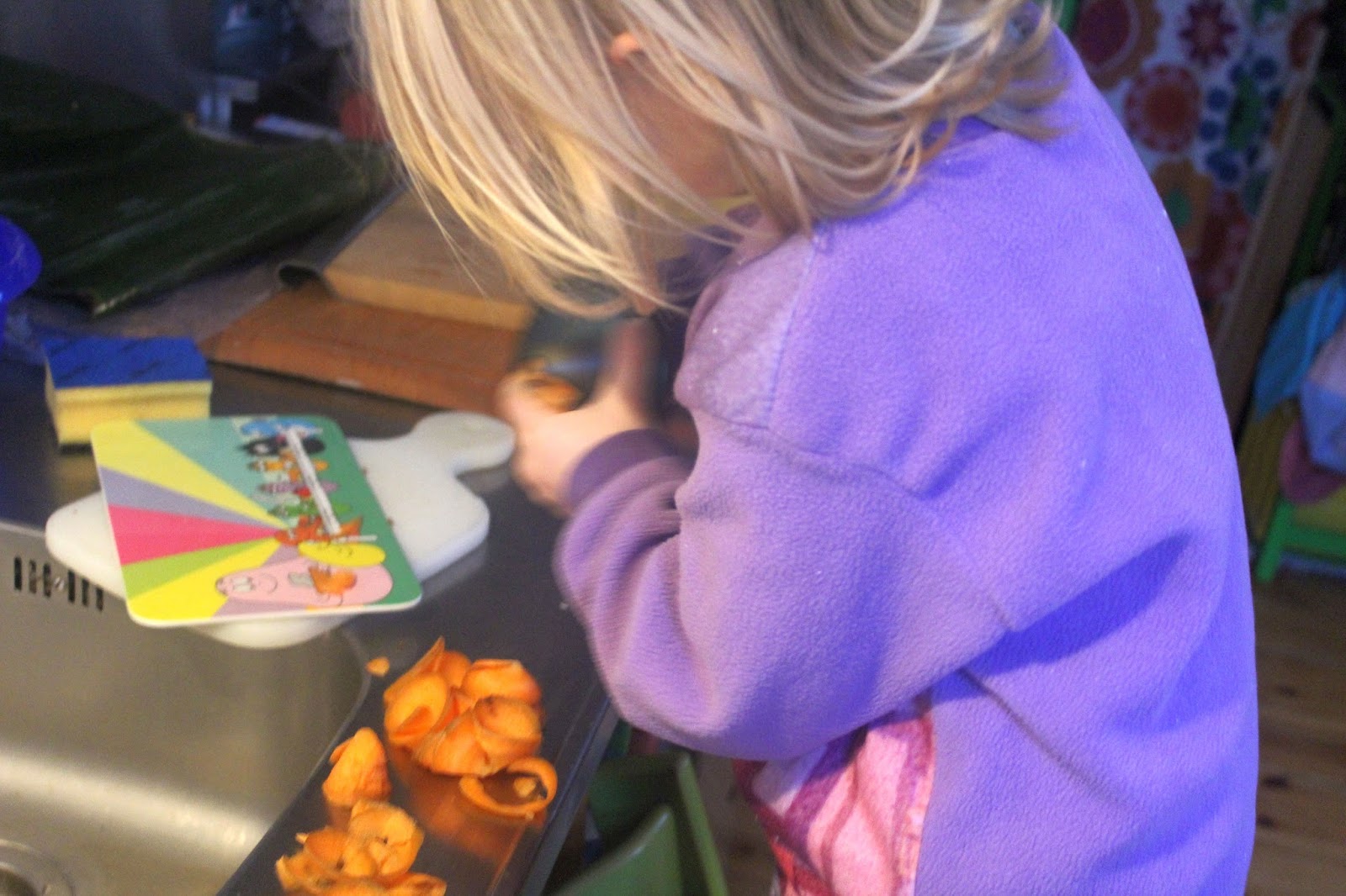 Dann erfolgte die Übergabe an Tochter Nummer eins (nur echt mit der 5), die auch so lange Möhren in Spiralen drehte, bis sie vorgab sich auch geschnitten zu haben, also blieb der Rest wieder für mich.