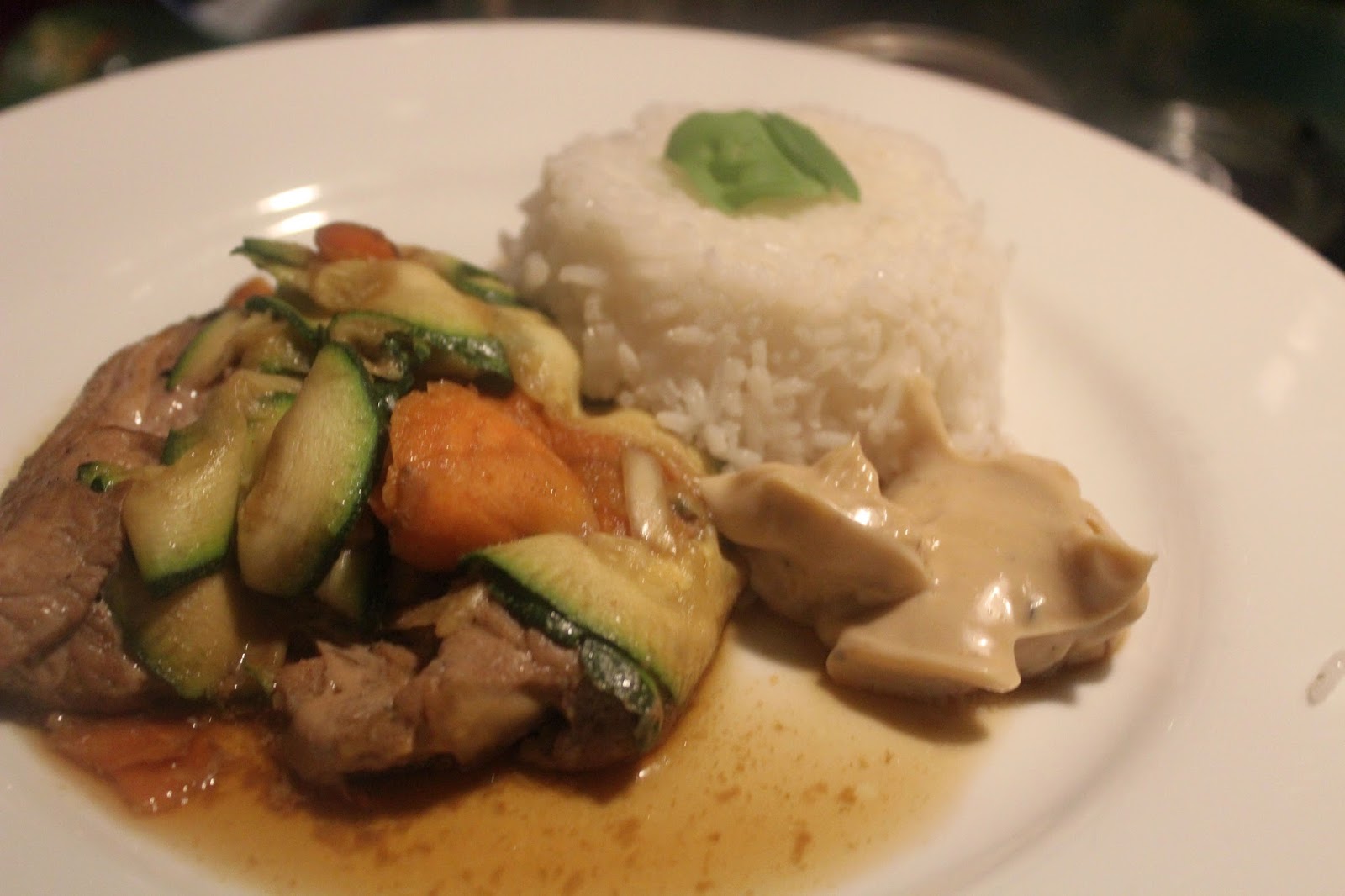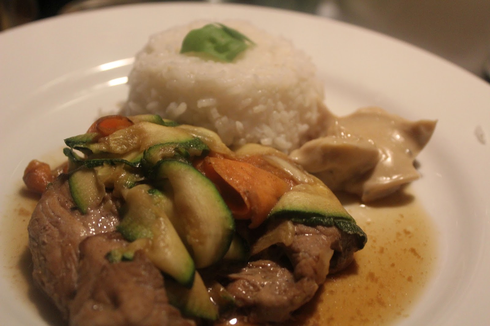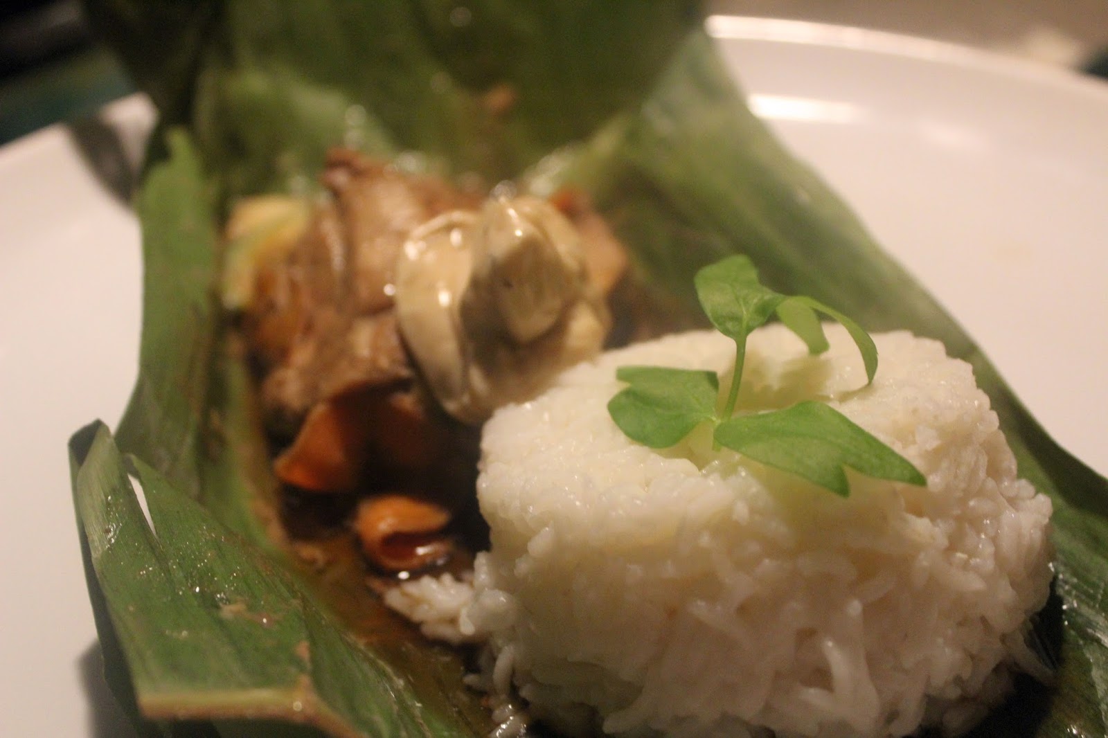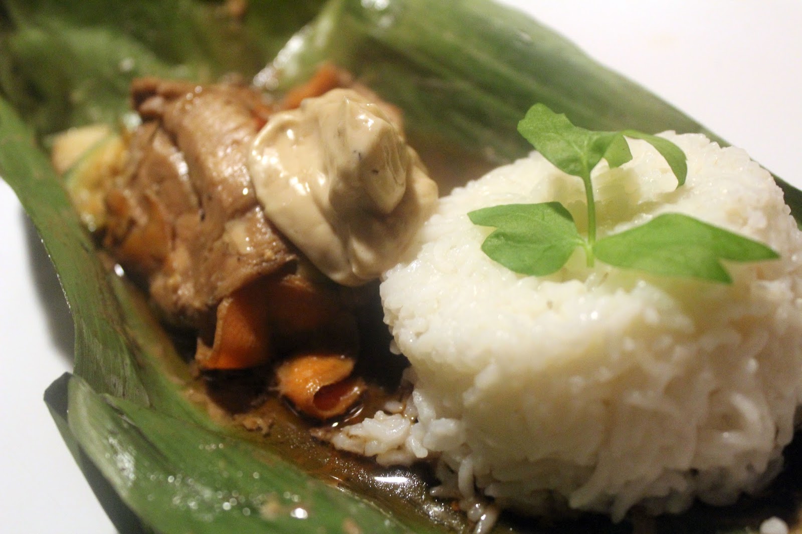 Das schmeckt auf jeden Fall toll, schön würzig. Das Fleisch ist sehr zart und dem bekommt die Art der Zubereitung, mit wenig Temperatur und gut geschützt in den Bananenblättern, sehr gut. Das Gemüse ist sehr aromatisch und der Reis macht satt. Mehr kann man von so einem leckeren Essen, das in einer Stunde auf dem Tisch nicht erwarten. Für alle die gerne “asiatisch” essen, ist das in meinem doch eher bürgerlich bodenständigem Gekoche mal eine “exotische” Abwechslung.