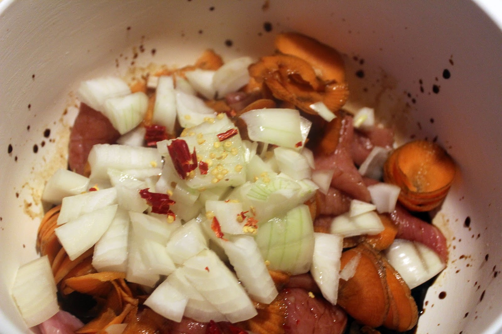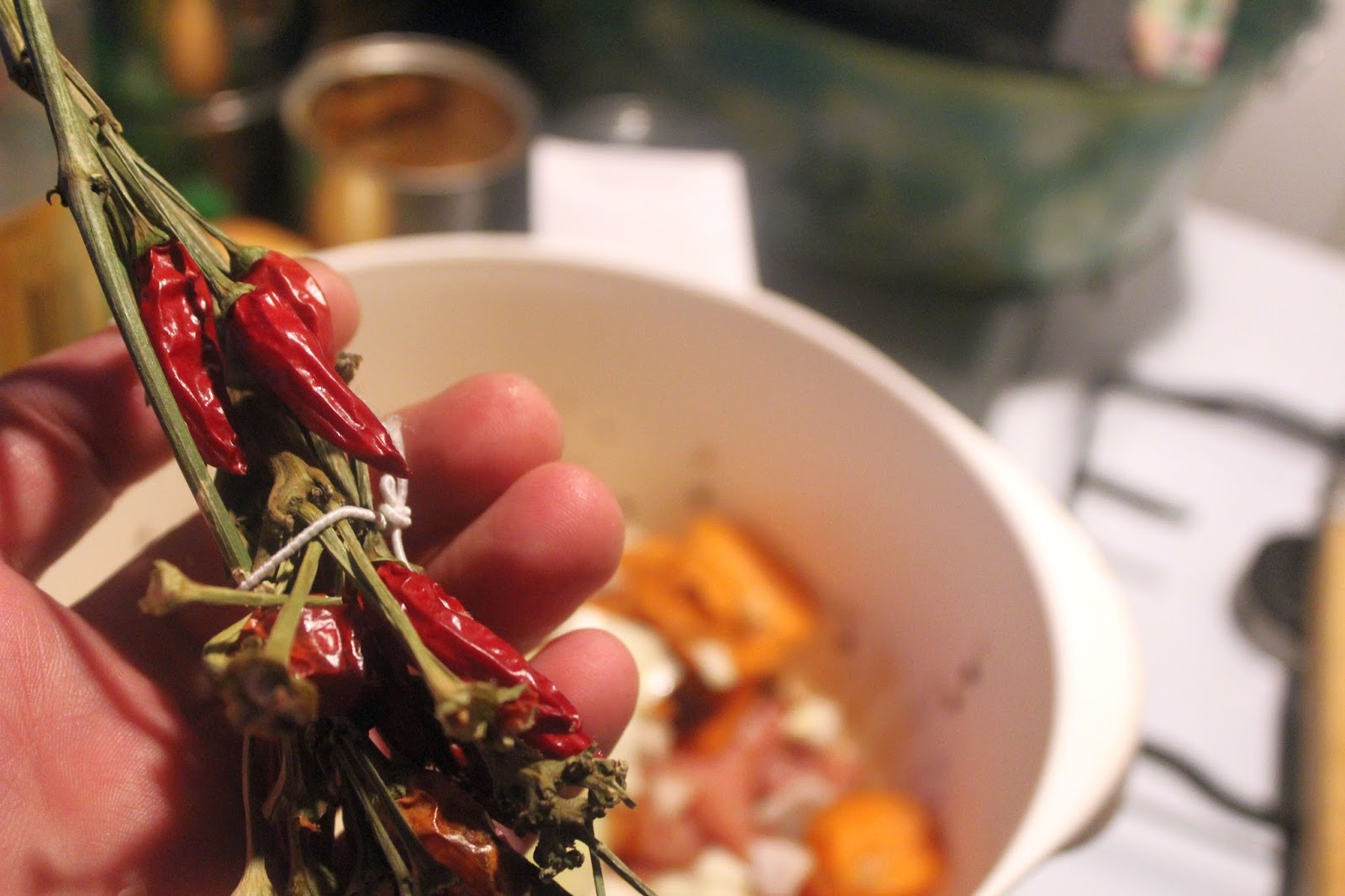 Die Peperoni habe ich ein bisschen zerkleinert, damit die Schärfe sich gut verteilt.