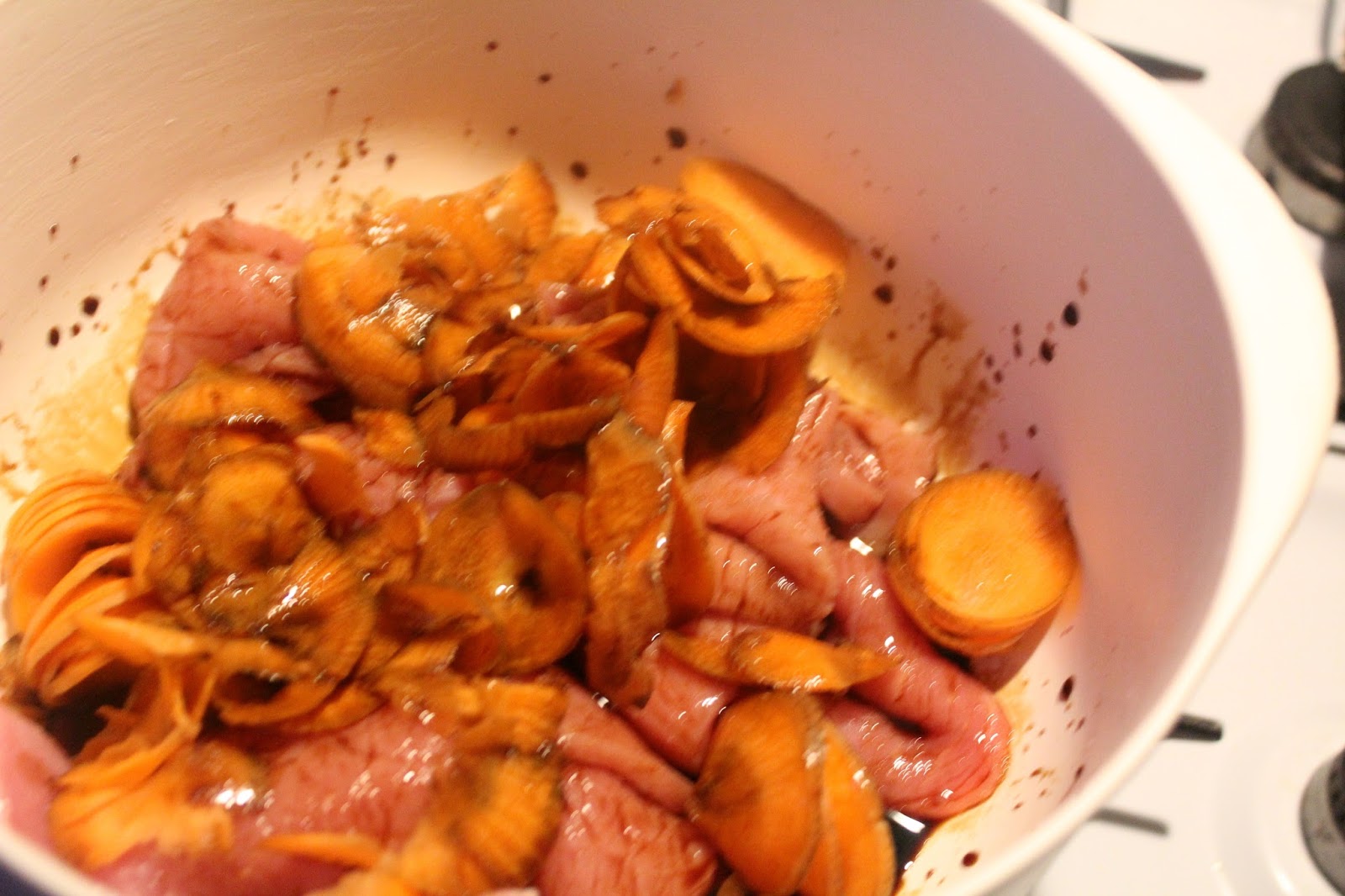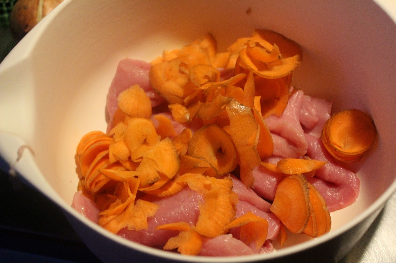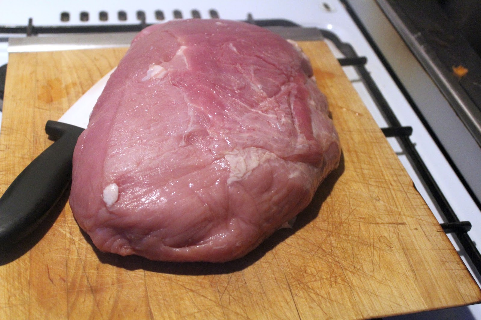 Das ist mein 2 Kilo Stück Oberschale vom Schwein. Das habe ich am Samstag total ergebnisoffen bei Metro gekauft. Wenn mir nichts einfällt, oder wenn besondere Aufträge aus der Familie kommen, werden daraus Schnitzel, aber jetzt wird zumindest das erste Kilo im Asia Style verarbeitet.