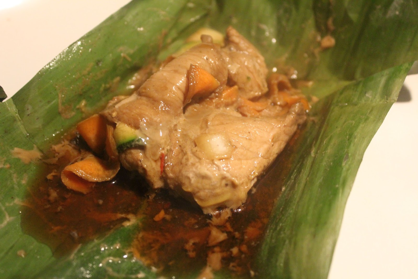 So richtig asiatische Küche, wie man sie in Asien kennt, kann man hier mit der Lupe suchen. Das ist meistens auf europäische Gaumen zurechtgestutzt, weit weniger scharf und vor allem, was ist asiatische Küche? Asien ist ja auch ein bisschen größer und geht hinter dem Ural los, umfasst unter anderem China, Japan, Korea, Vietnam, Kambotscha, Indien, Indonesien und und und. Die kochen ja nicht alle gleich auch wenn es der gleiche Kontinent ist. Macht Sinn, oder? Wenn man im Westen in Chinarestaurants geht, dann bekommt man jenseits von Dingen, die sich chinesisch anhören, auch immer noch Chop Suey, was meines Wissens indonesisch ist. Im Osten haben wir nur Vietnamesen, die so tun, als wenn sie Chinesen wären. Deswegen gibt es so ein paar asiatische Anleihen, die man in unser angestammtes Essen einbaut, ohne wirklich asiatisch zu essen. Das gallische Dorf für authentisches asiatisches Essen ist übrigens HIER (anklicken). Das Asienorakel Lars Westerhausen lässt übrigens anmerken, dass man die Bananenblätter “über der Flamme des Gasherdes leicht erhitzen, bis die Blätter glänzen. Sind dann einfacher zu biegen und geben dann auch mehr ätherische Öle frei.”