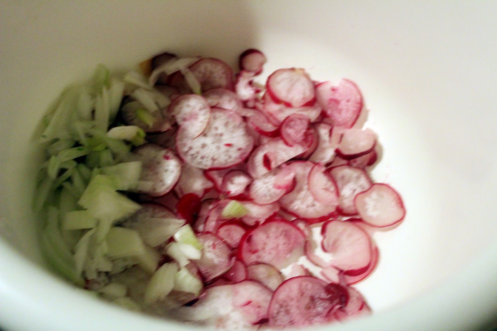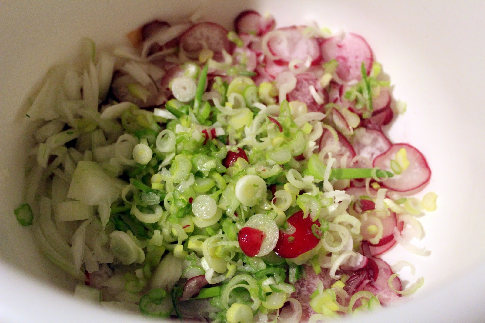 die zwiebeln sollen ein wenig bekömmlicher sein, wenn sie vorher erhitzt werden. radieschen sind total lecker, ich musste mich auch lange daran gewöhnen, jetzt geht es aber gut. ich habe die über rettich mögen gelernt. falls du das rezept brauchst, schau mal unter mairüben in meinem blog.