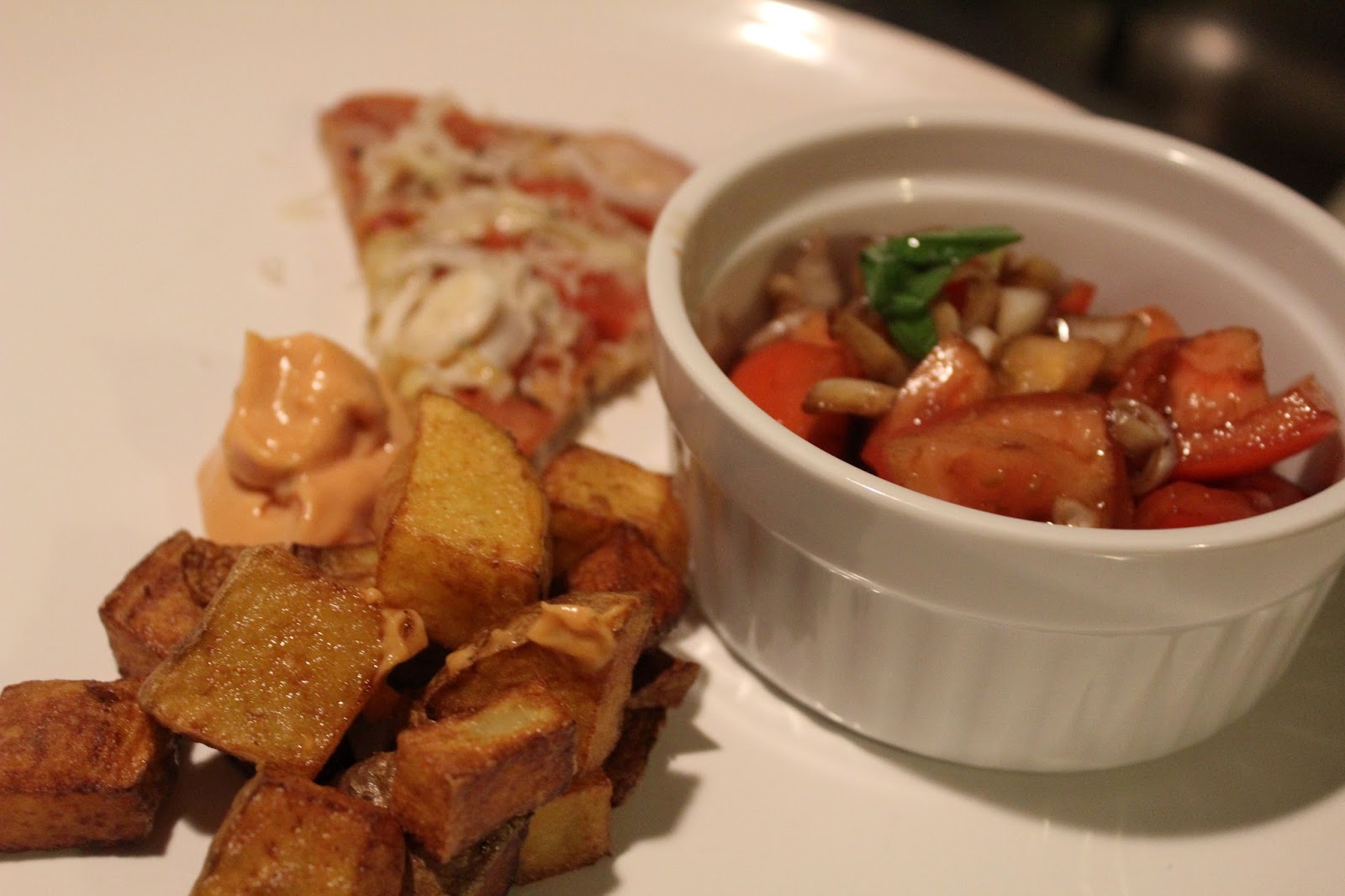 Wenn man dazu noch eine schöne Soße hätte… Ooops, da ist sie schon, eine sensationelle Tomataise (anklicken). Die habe ich mir extra dazu einfallen lassen, weil das nicht so einen Pommes mit Mayo und Ketchup Charakter haben sollte, sondern einen Anflug von Italien.