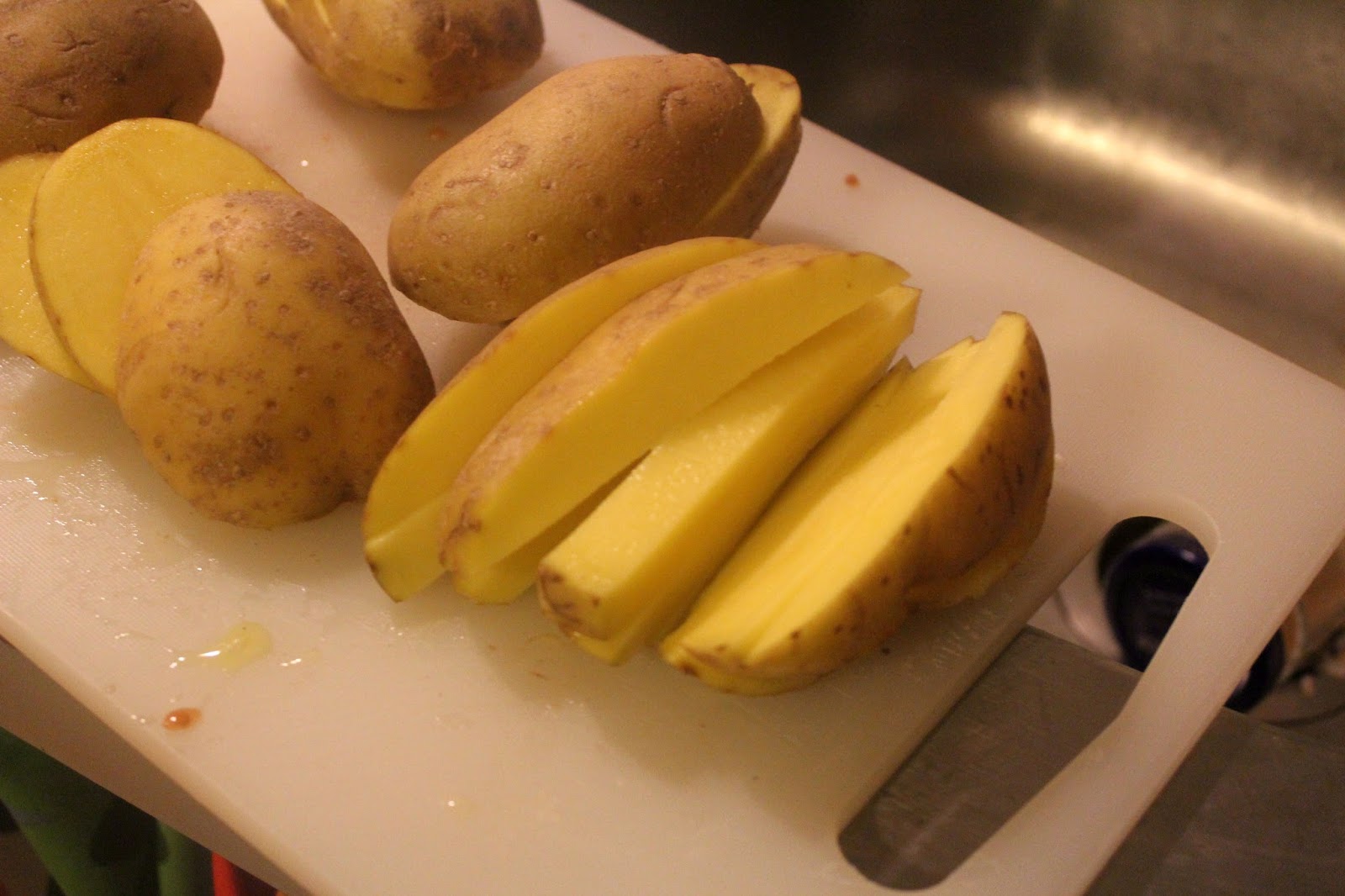 Die Kartoffeln waschen und dann zuerst in Scheiben schneiden