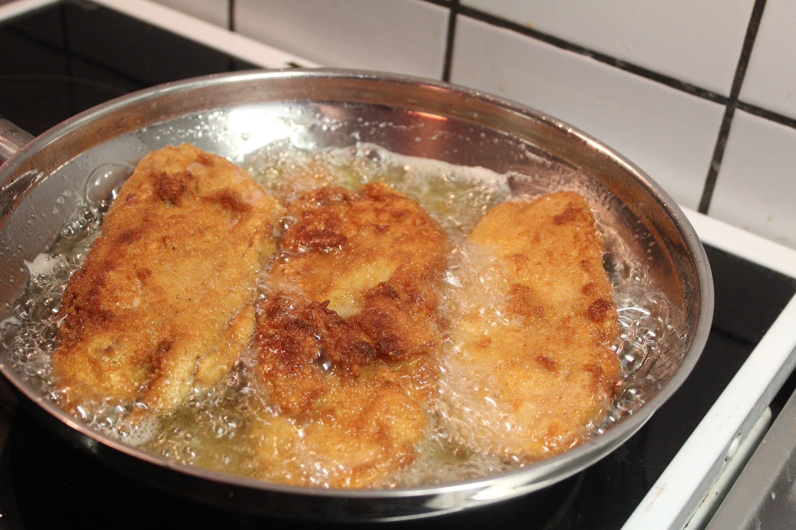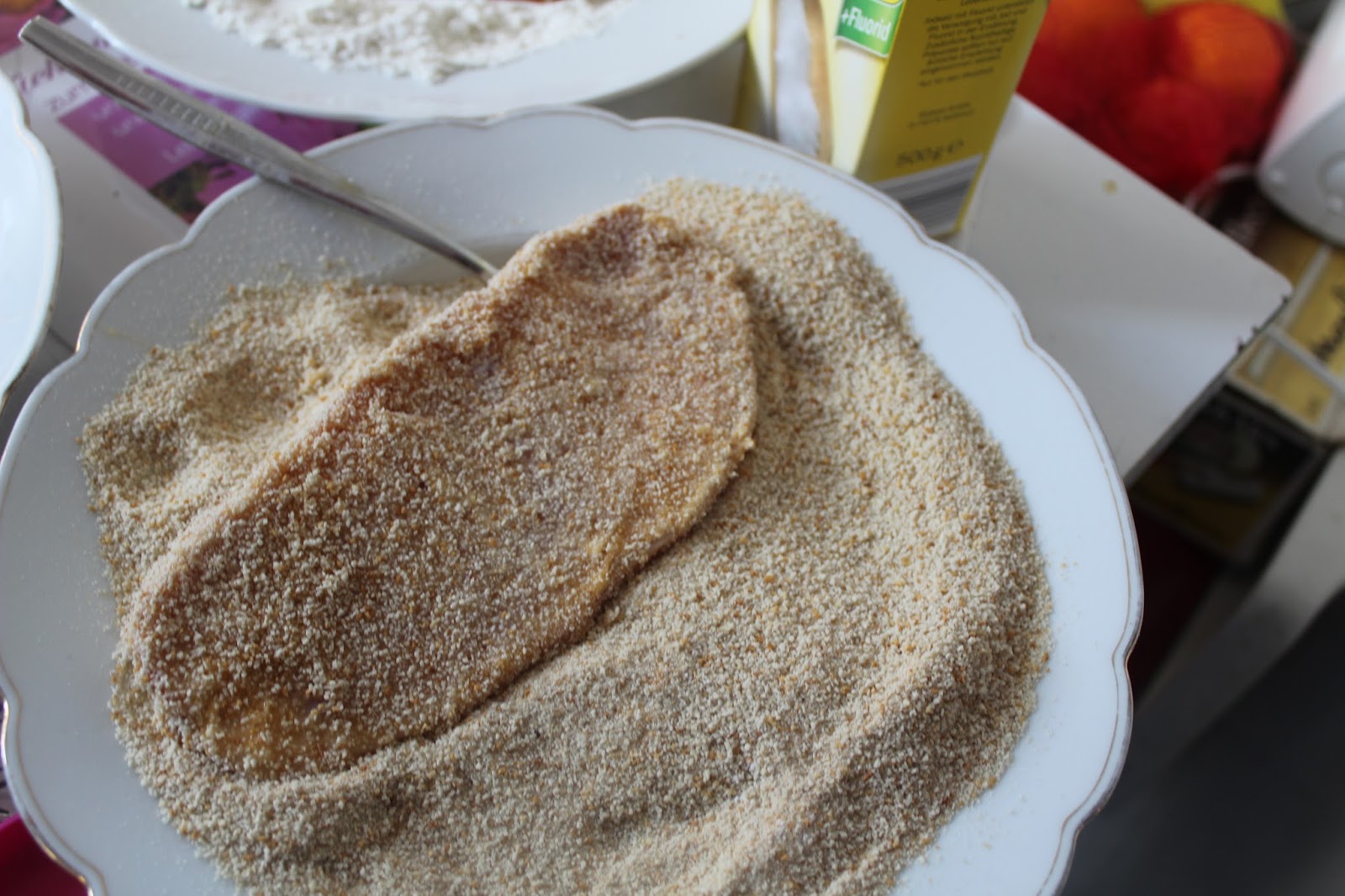 Eine gute Gelegenheit, um meiner Mutter mal zu zeigen wie man Schnitzel brät, weil die das zeilebens nicht geschafft hat, die mal knusprig zu braten, ohne dass die Panierung abfällt. Kein Wunder wenn man die mit so ner Mickymaus Temperatur 20 Minuten mit zu wenig Fett immer nur von links auf rechts drehend durch die Pfanne schiebt.