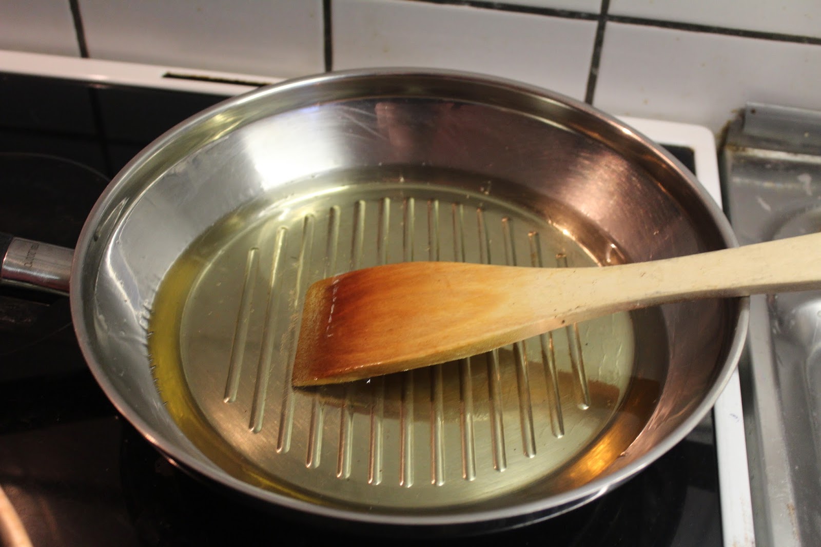 Ich habe ewig nicht mehr auf einem Elektroherd gearbeitet und war echt gespannt, wie das wohl funktioniert. Ich kann aber beruhigen, das geht so gut wie auf Gas, wenn das Öl erstmal heiß ist. Das dauert länger als auf Gas, aber geschenkt. Der Pfannenwender ist mein Thermometer.