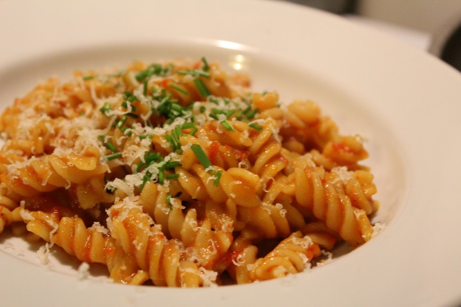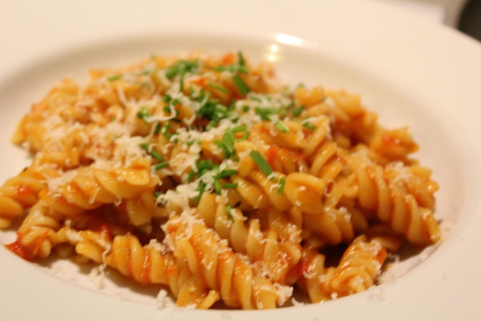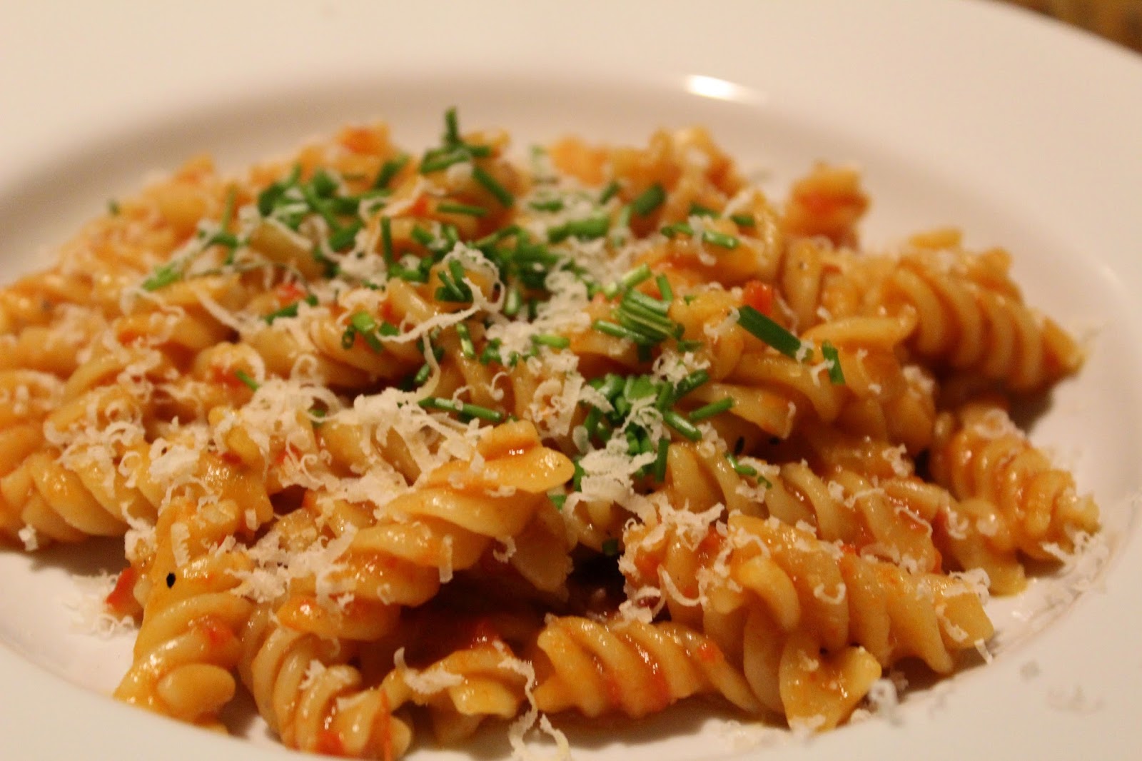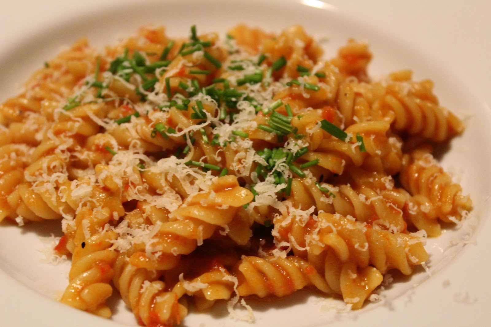 Ich hätte lieber Spaghetti oder Bandnudeln, aber meine Frau hat im Moment immer noch den kleinen Vampir an der Brust hängen und deswegen meistens nur eine Hand beim Essen frei. Zwangsweise sind die Nudeln kurz, damit das beim Essen einfacher ist.