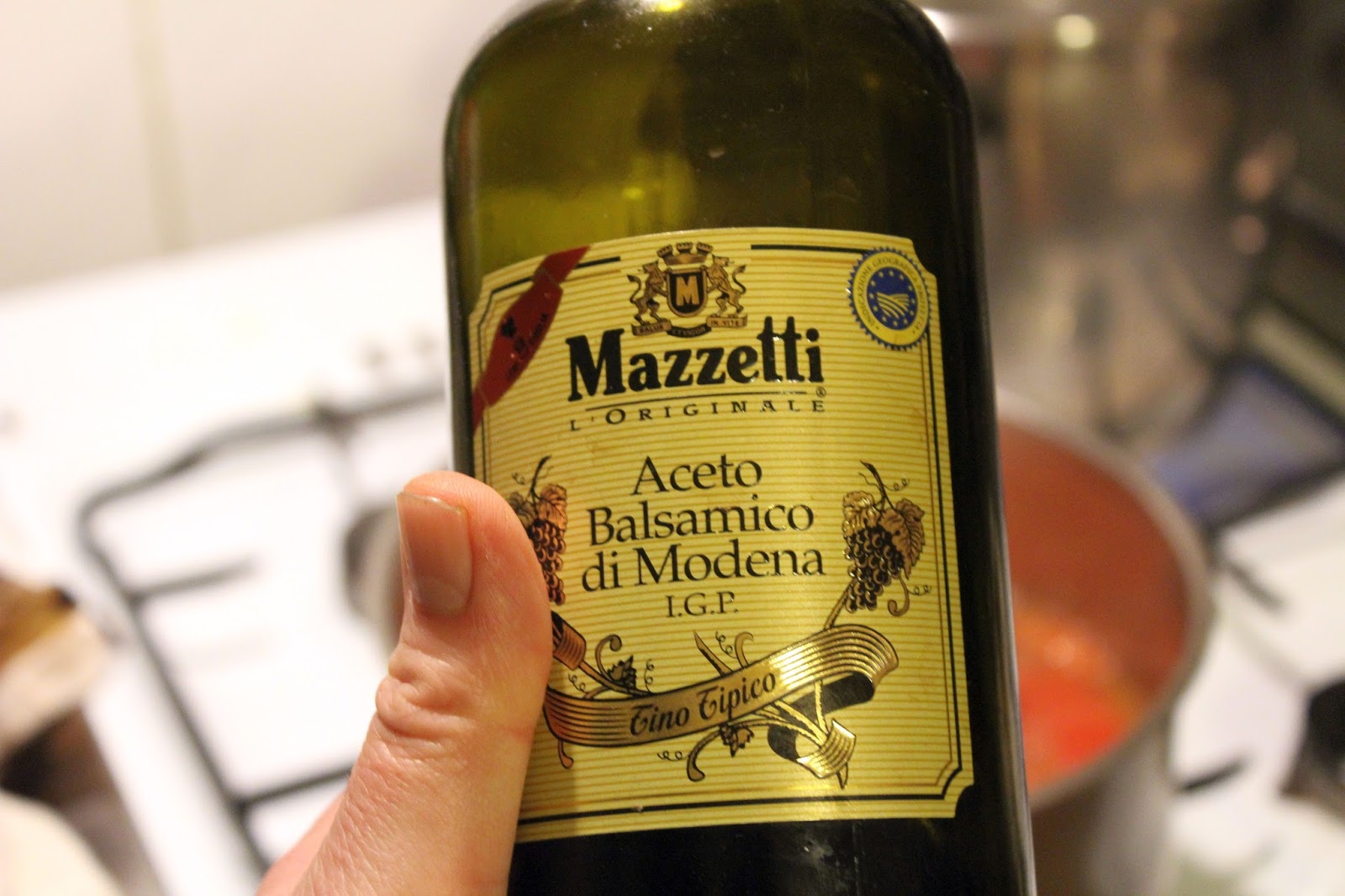 Für die Säure einen ordentlichen Schuss Balsamicoessig zu den Paprika geben.