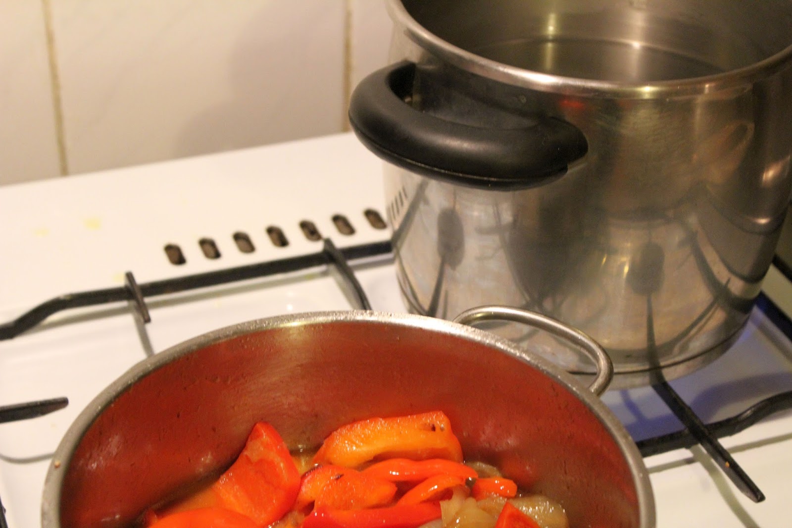 In der Zwischenzeit schon mal das Nudelwasser erhitzen.