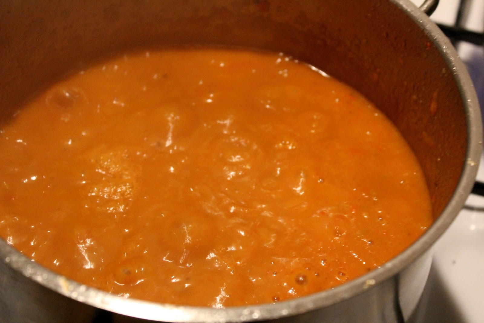 Wenn die Paprika weich sind, mit dem Pürierstab pürieren. Wie grob oder fein Ihr das pürieren wollt, obliegt Eurem subjektiv gutem Geschmack.