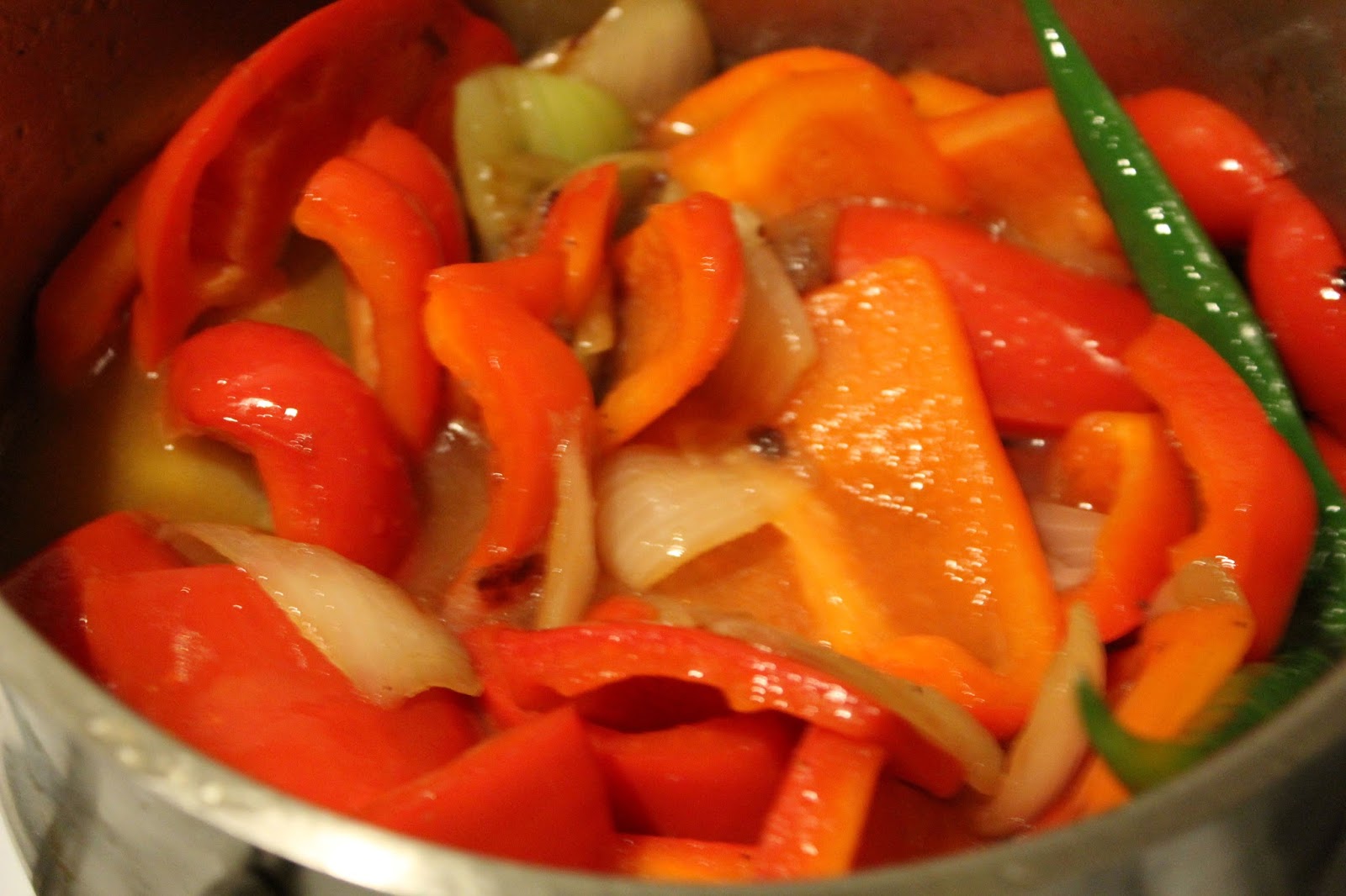 Paprika 20 Minuten auf mittlerer Hitze dünsten lassen.