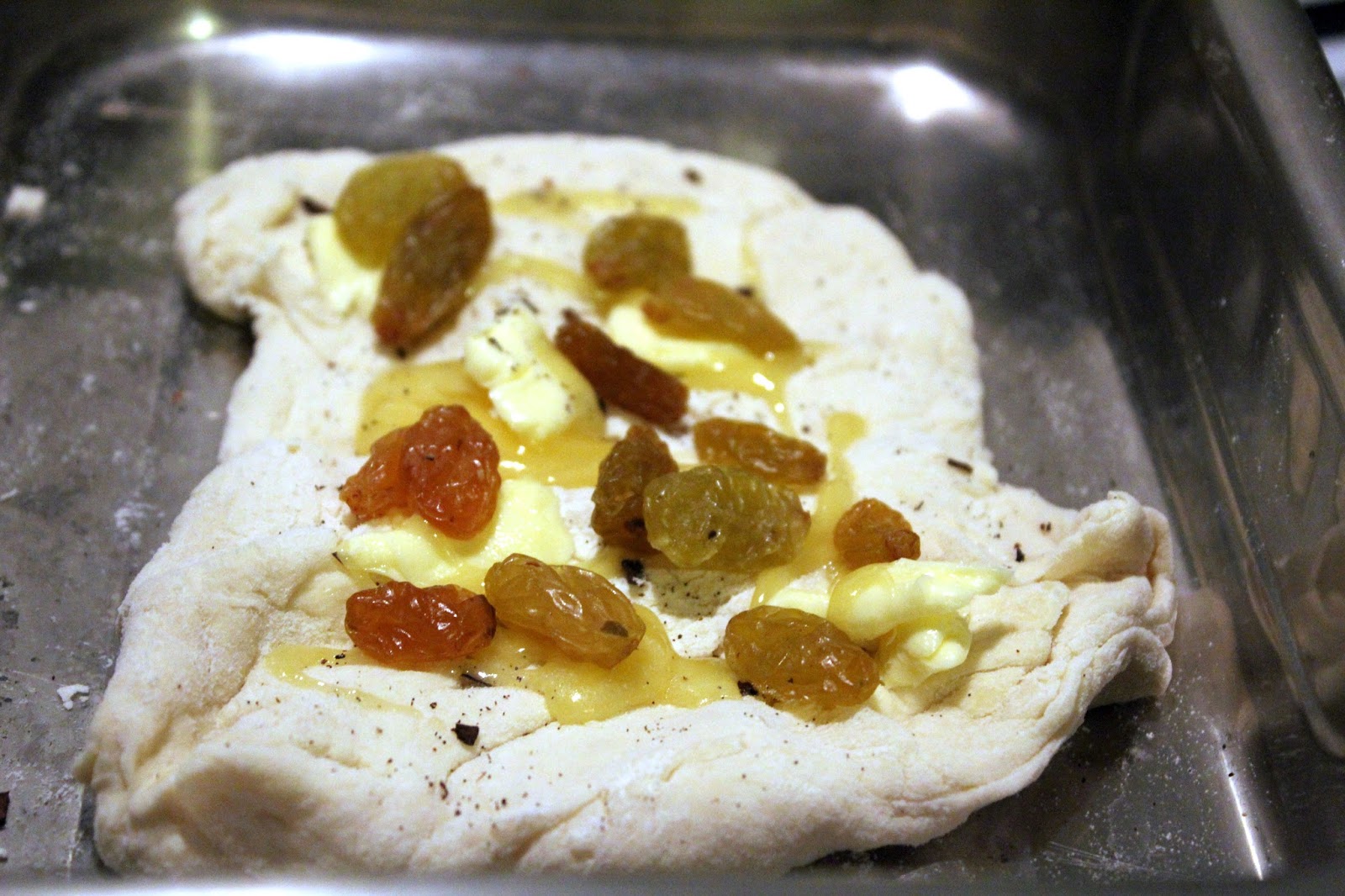 Das ist richtig einfach und richtig lecker! Schnelles Backwerk nach einem guten Essen. Ich hatte noch ein bisschen Pizzateig übrig, nachdem ich fünf Erwachsene und meine Kinder mit zwei Sorten Bandnudeln, verschiedenen Soßen, Salat und fünf Salamipizzen fast zum Platzen gebracht habe.