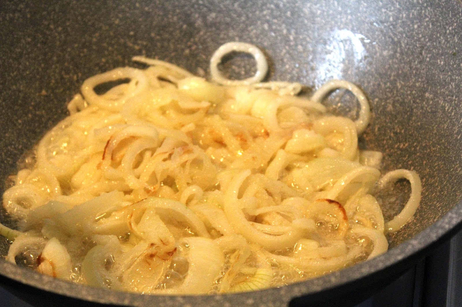 Die selbst gemachten Röstzwiebeln lassen sich auch gut vorbereiten, oder man hat sie schon griffbereit, weil man sie auf Vorrat hergestellt hat. Die braucht man ja immer, für Hotdogs, über Käsespätzle, oder weil man sie einfach gerne isst.