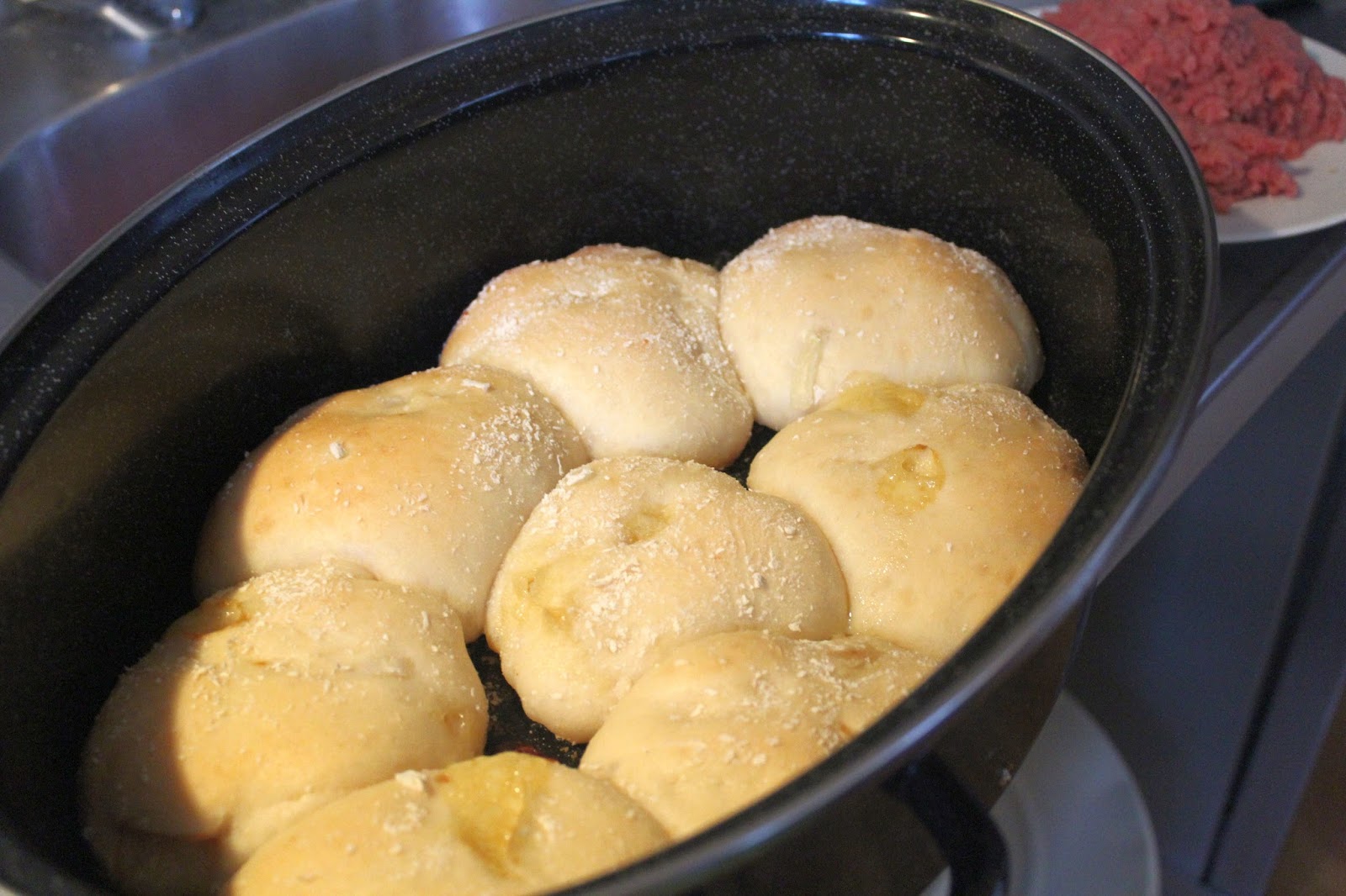 Wenn die Burger serviert werden sollen, müssen zuerst die Burger Buns gebacken werden, damit sie schon startklar sind. Das kann man auch schon ein paar Stunden vorher machen, aber die sind halt auch besser, je zeitnäher sie zum Servieren gebacken werden.
