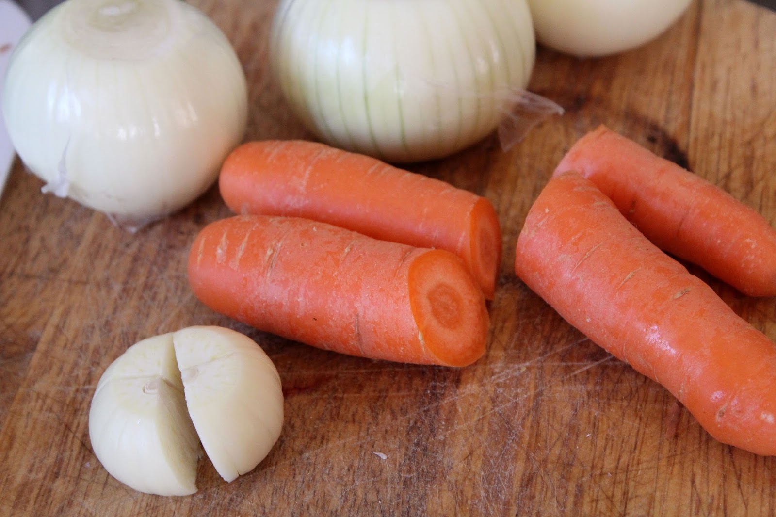 • Ich nehm gern auch noch ein Stück Sellerie dazu und laß alles dann am liebsten in nem gußeisernen Bräter stundenlang vor sich hin schmoren 😉