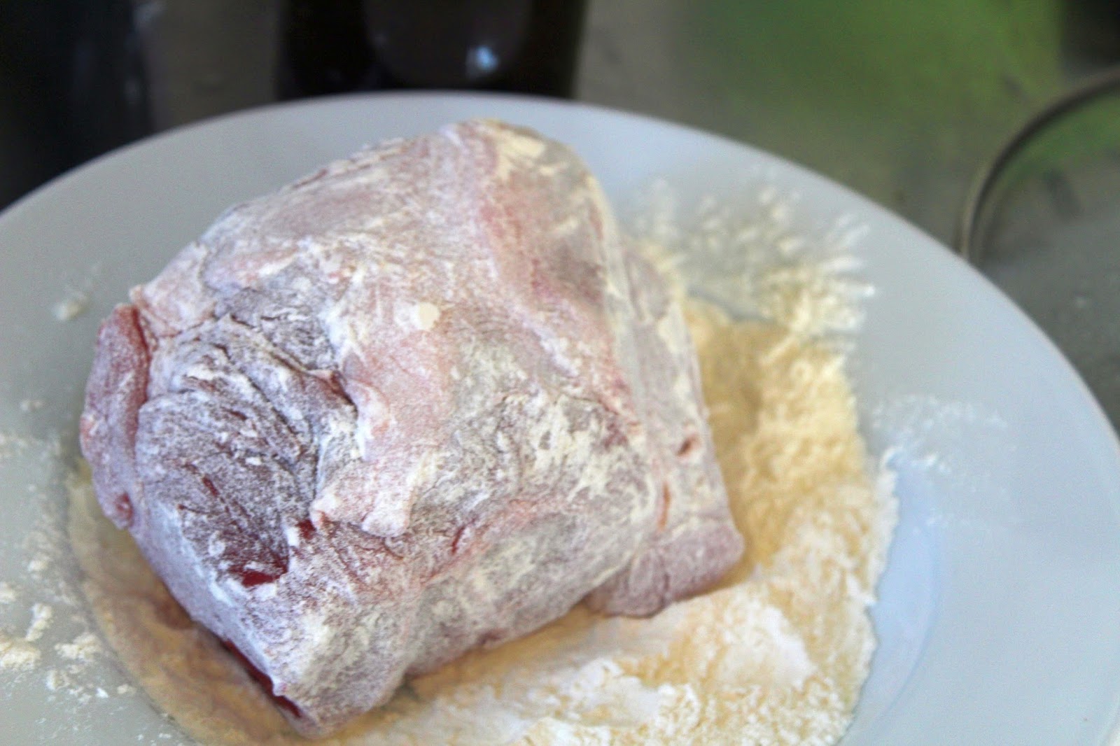 Das Fleisch wird vor dem Anbraten mehliert.