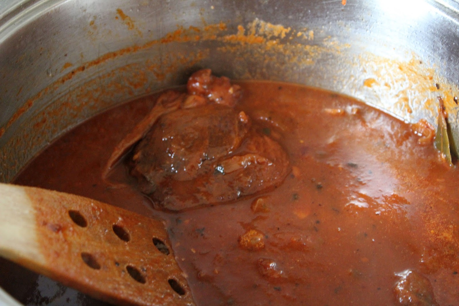 So, es ist vollbracht: Nach ca. 4 1/2 bis 5 Stunden simmern (was bei meiner einfachen Induktionskochplatte nicht gut geht, kocht immer wieder auf, warum auch immer…neue Platte?!?) war ich gespannt wie ein Flitzbogen…. das Suppenfleisch, na ja, kriegt beim Aufwärmen noch mal ne Chance, die Beinscheiben super (nur die “Häute” sind schlimm, aber die Soße….. ich habe nach ca. 4 Stunden das Gemüse raus und dafür dann Rosinen und ein paar Mandelgeraffel rein, ja, wäre mein Topf groß genug gewesen, ich hätte mich reingeschmissen. Ich werd beim nächsten Mal vielleicht nur Beinscheiben nehmen vorher aber das Fleisch rausschneiden und den Rest so mitschmoren und zum Schluss vielleicht mal einen Apfel reinschneiden und als Abschluss einen Schuss Calvados… in der Soße hatte ich ca. 1/2 ltr. Wein…