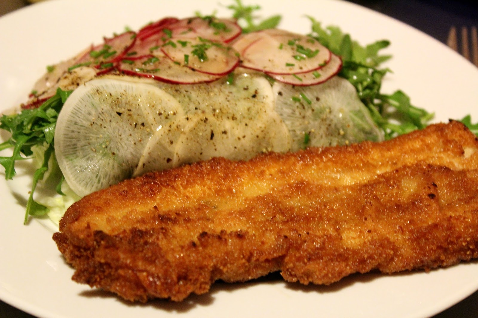 Ich finde das Klasse. Das Fleisch ist sehr kross, der Salat super frisch und ich empfinde das immer als besondere Freude, wenn man aus einfachen und vielfach verkannten Dingen trotzdem etwas leckeres machen kann.