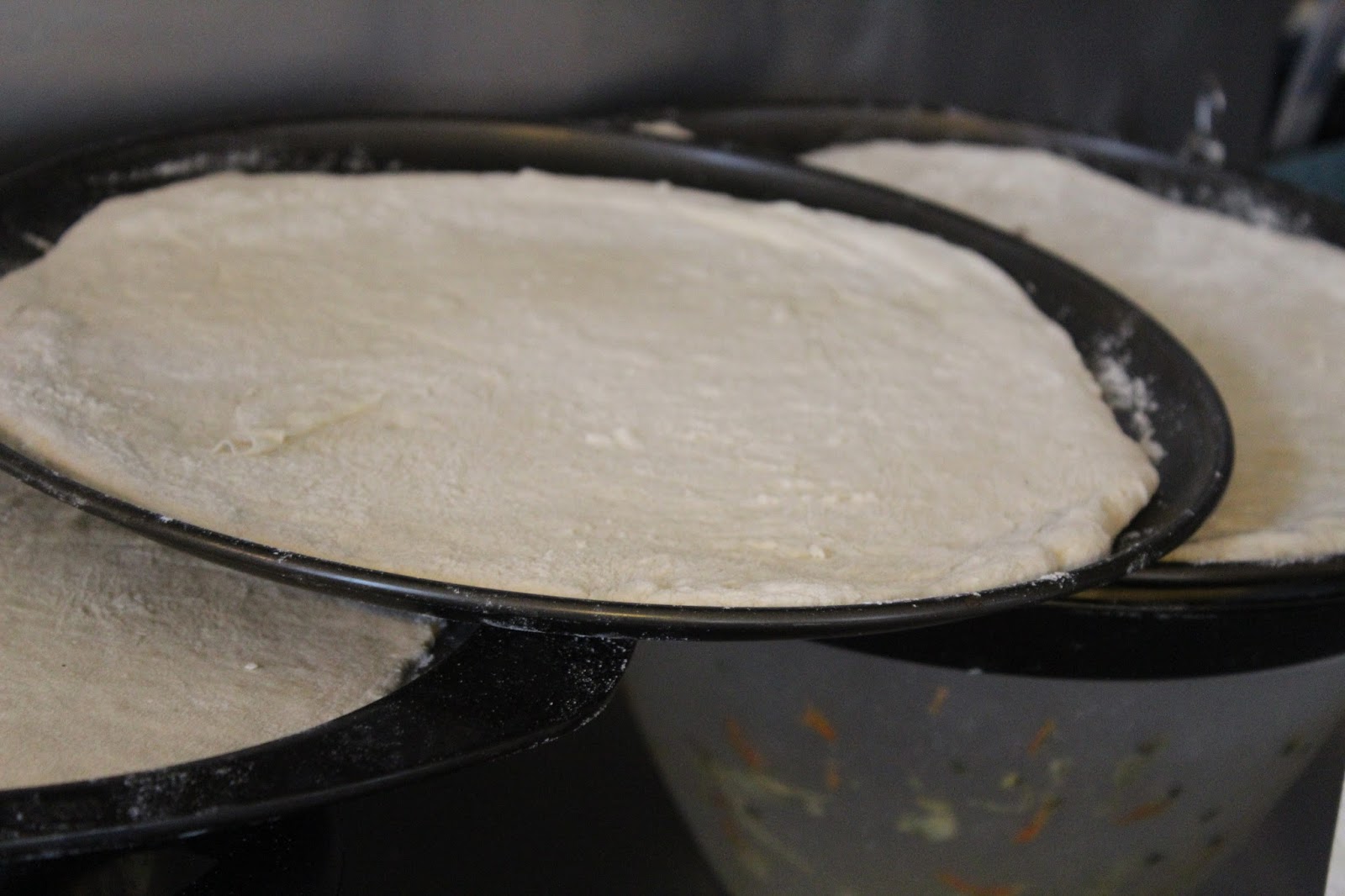 Den Pizzateig und das Ausrollen findet Ihr in meinem Basisbeitrag über Pizzateig. Bigtte anklicken. Da könnt Ihr meinen einfachsten Pizzateig ohne Kneten finden. Der wird mit dem Löffel gerührt und gelingt immer.