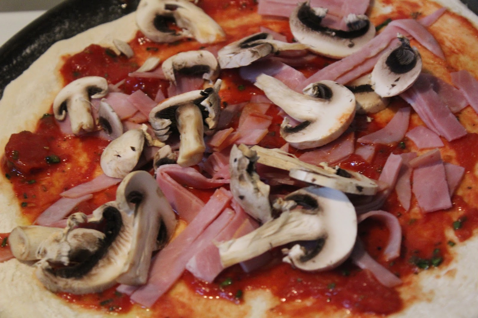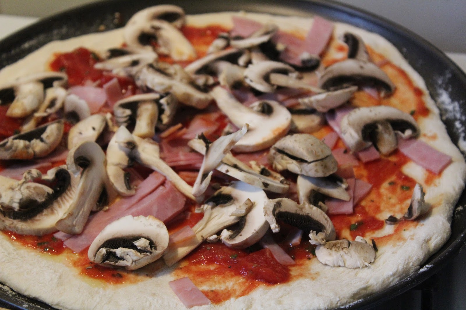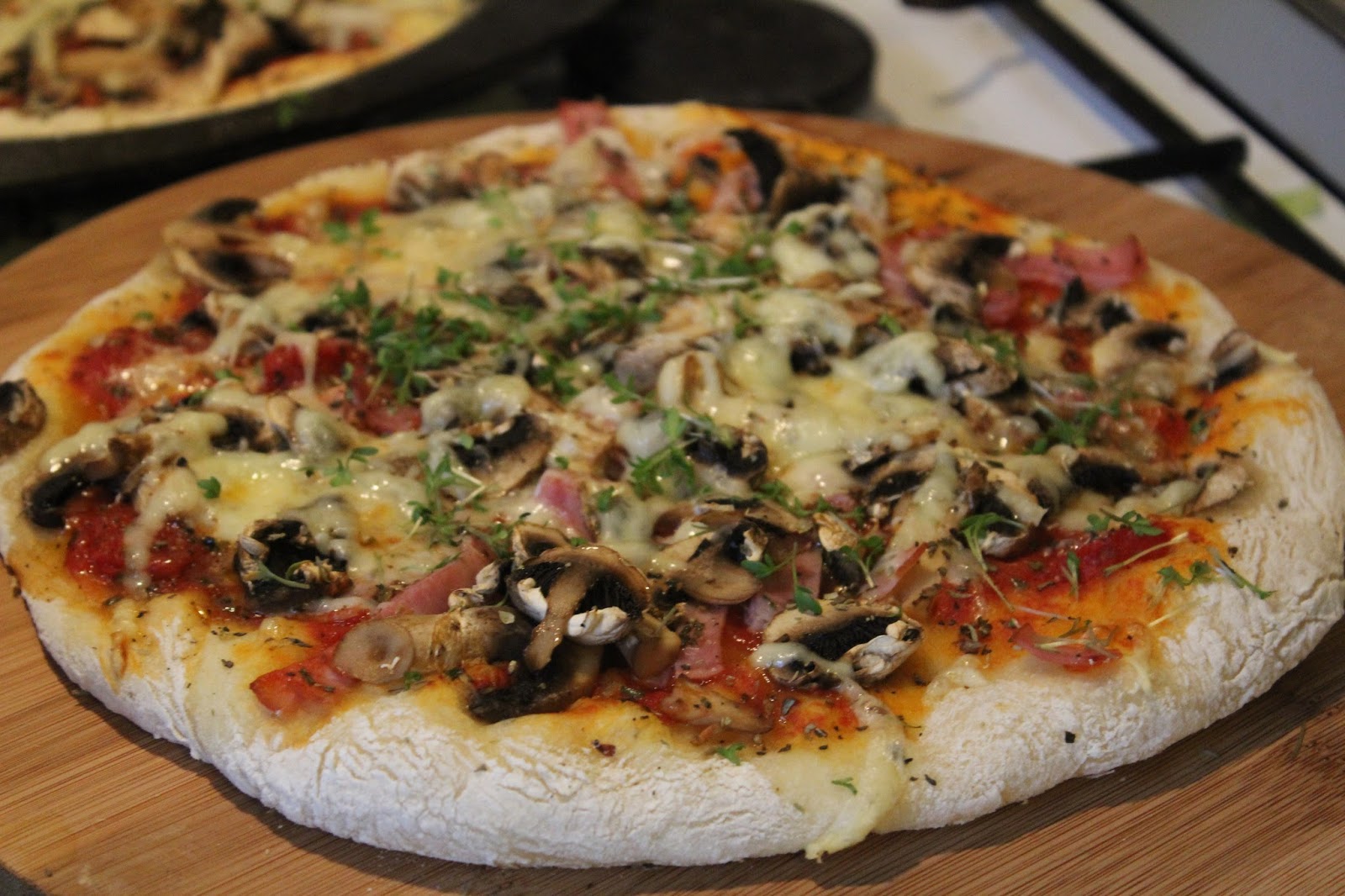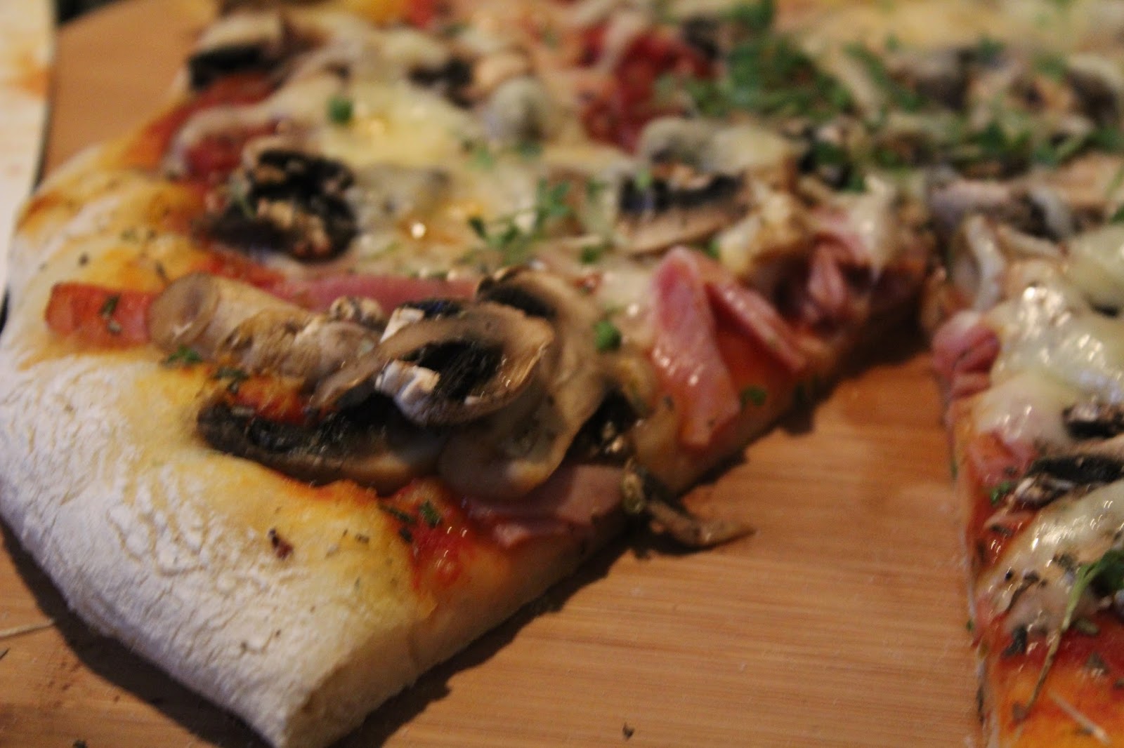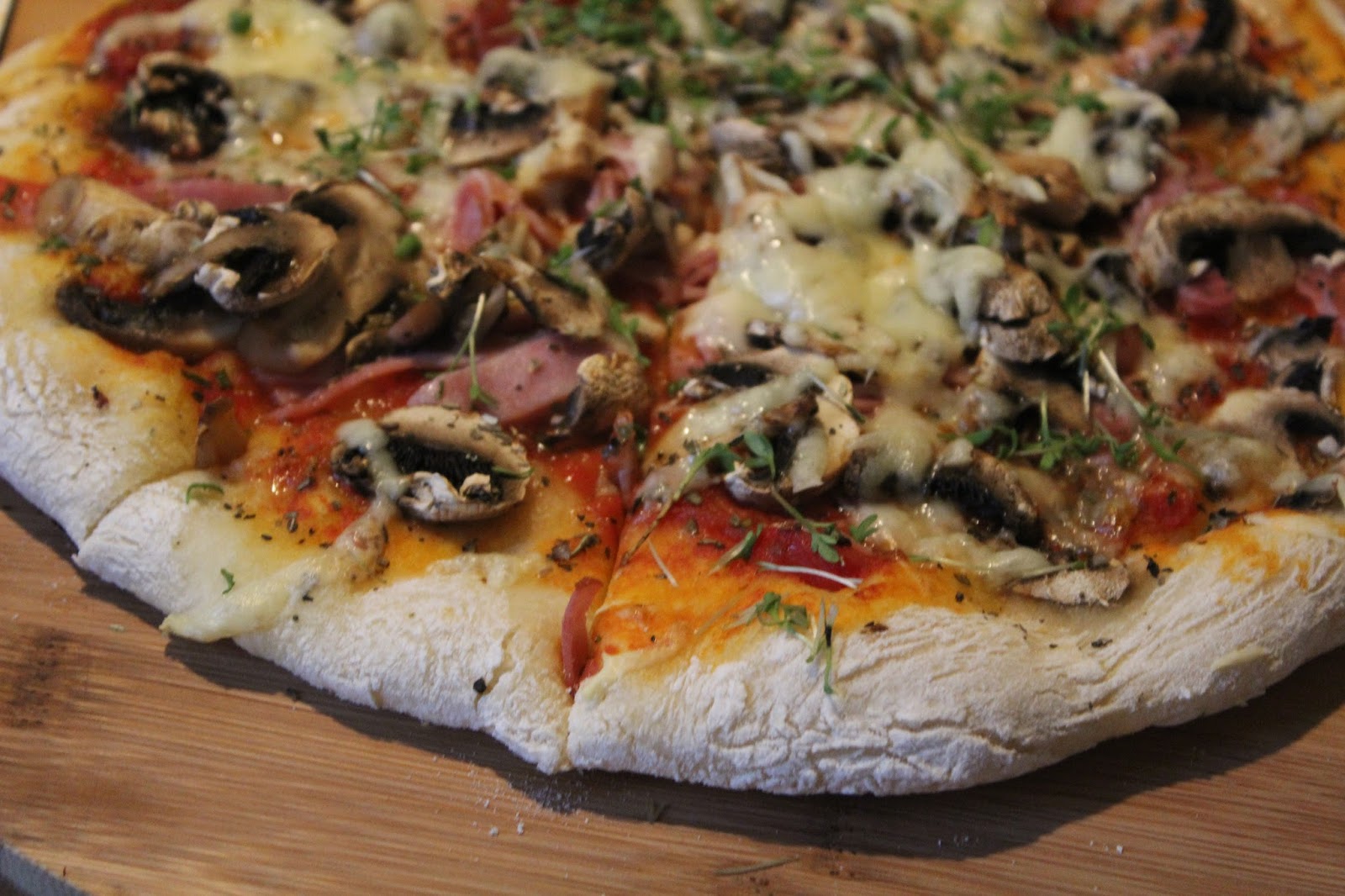 Das ist für mich die pure Erinnerung an meine Kindheit. Zuhause gab es nie Pizza und meine Eltern wären niemals mit mir italienisch essen gegangen. Ich werde zu der Zeit gerade frisch auf das Gymnasium gegangen sein und musste auf dem Nachhauseweg immer an einer Pizzeria vorbei. Dort bin ich dann irgendwann mal gestrandet und habe meine erste Pizza mit Schinken und Pilzen gegessen. Damals hat man sich darüber nie Gedanken gemacht, aber mir ist es bis jetzt ein Rätsel, wieso Italiener bei den Pilzen auf der Pizza, so oft auf Dosenchampignons zurückgreifen, selbst wenn es Pizzerien sind, die wirklich etwas auf sich halten. Meine Version wird natürlich mit frischen Champignons gemacht und deswegen hat die Pizza Prosciutto e funghi es auch verdient in meinem Blog aufzutauchen.