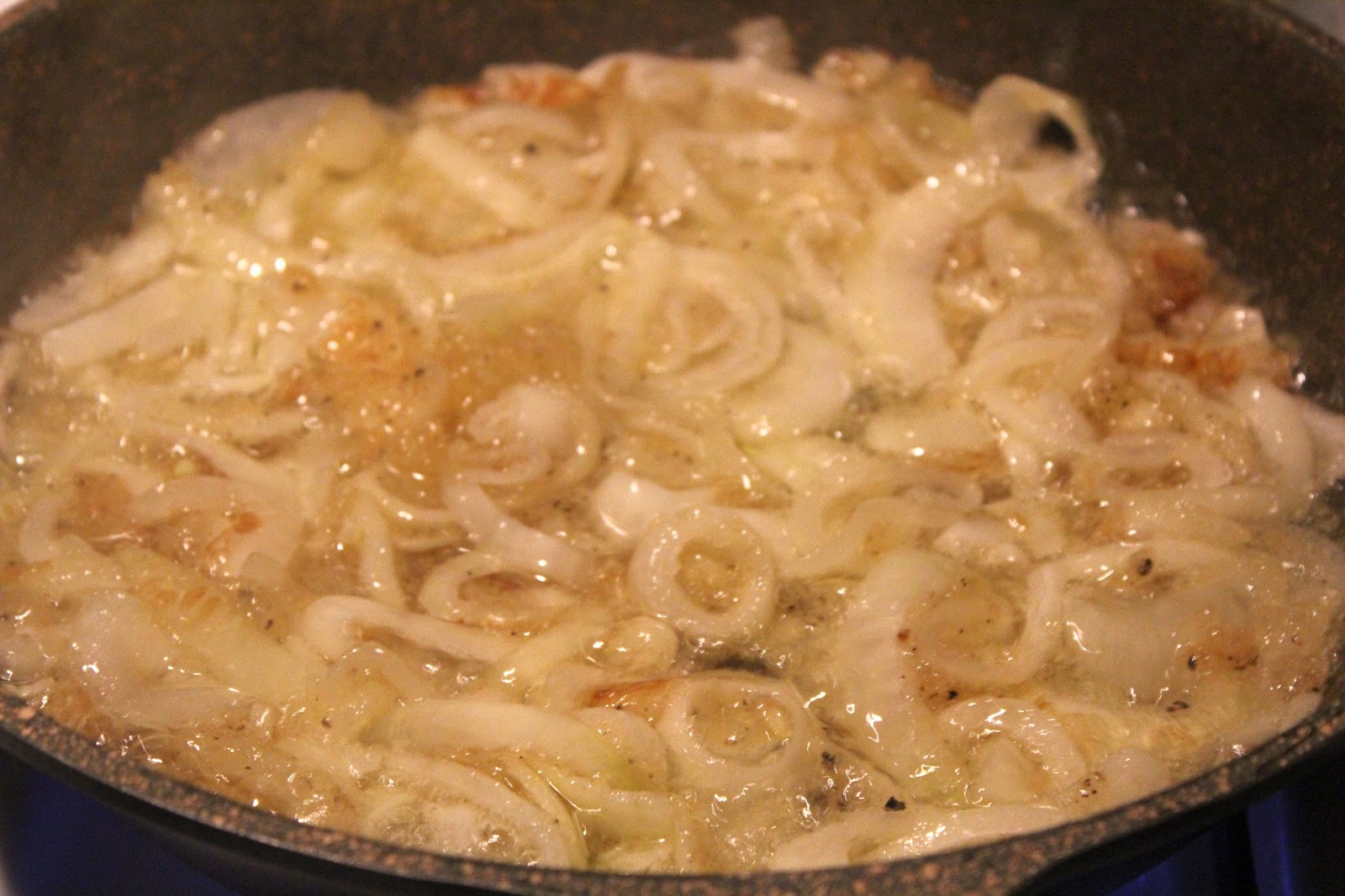 Hier kann man ganz gut erkennen, wie die Zwiebeln nach und nach brauner werden.