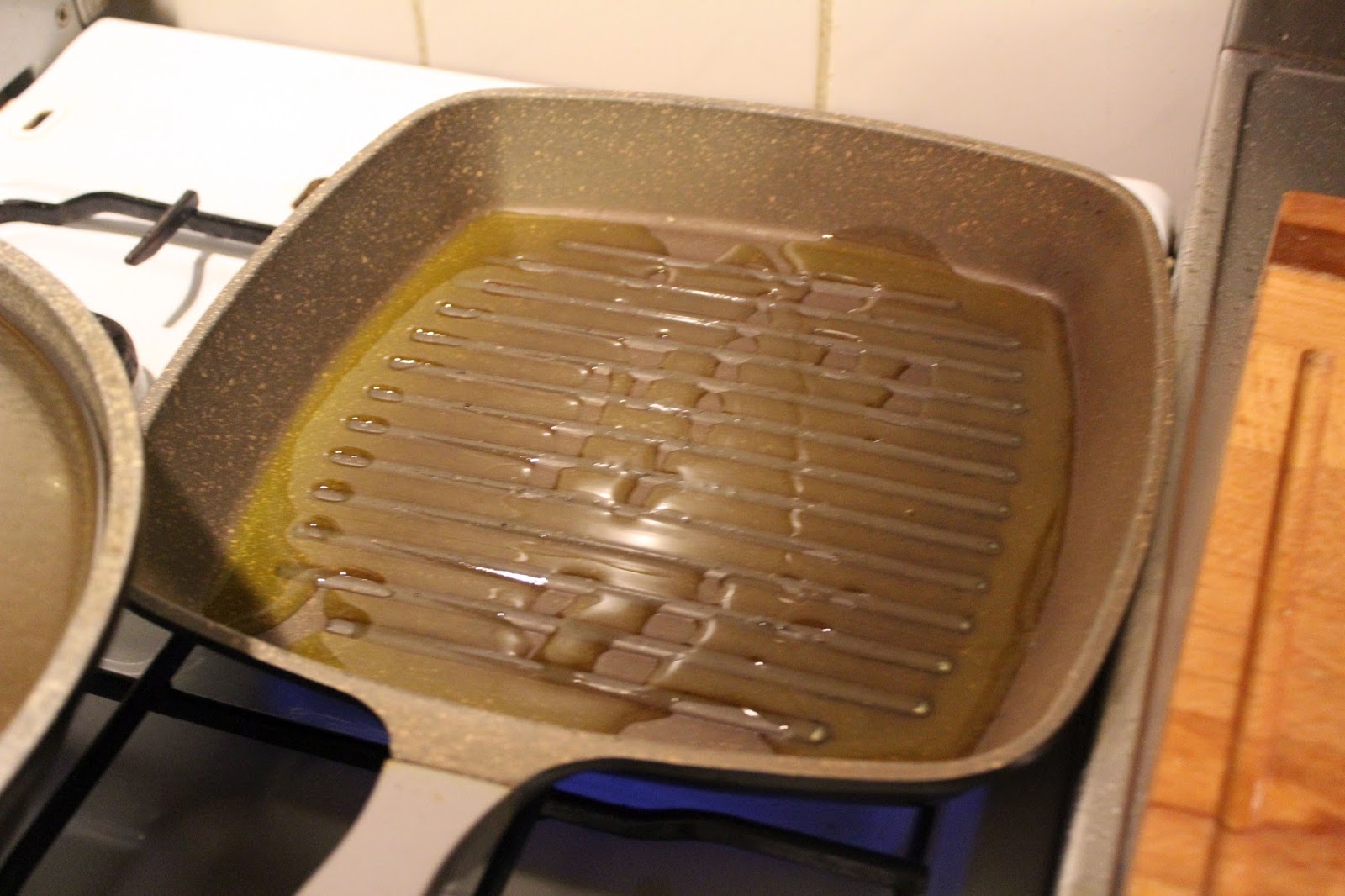 Das ist eine prima Aufgabe für meine Grillpfanne von diePfanne.com . Die ist viereckig und nicht rund. Deswegen passt da deutlich mehr Spargel hinein, als in eine runden Pfanne und man hat nirgendwo Probleme mit der Länge der Spargelstangen. Hier nehme ich nur Maß, um Euch das zu belegen, dass man darin super den Spargel braten kann. Der Spargel verliert beim Braten Wasser und schrumpft noch ein wenig. Am Ende liegt er dann nicht mehr so halb übereinander, sondern sauber in Reih und Glied.
