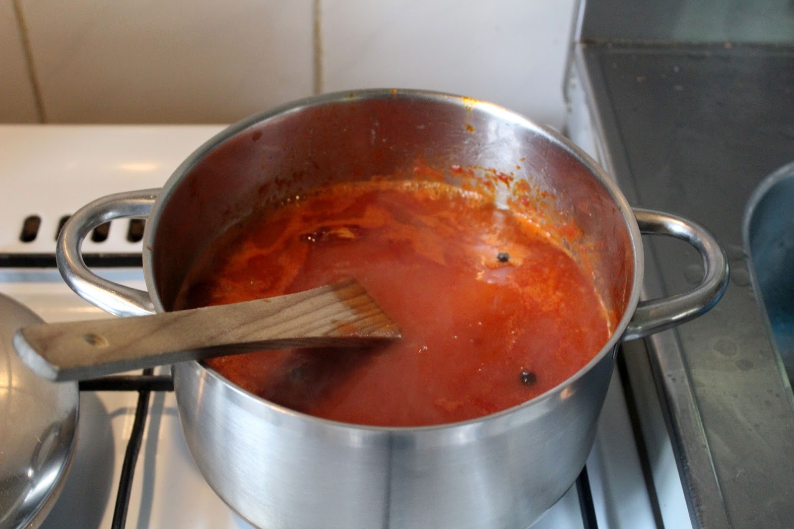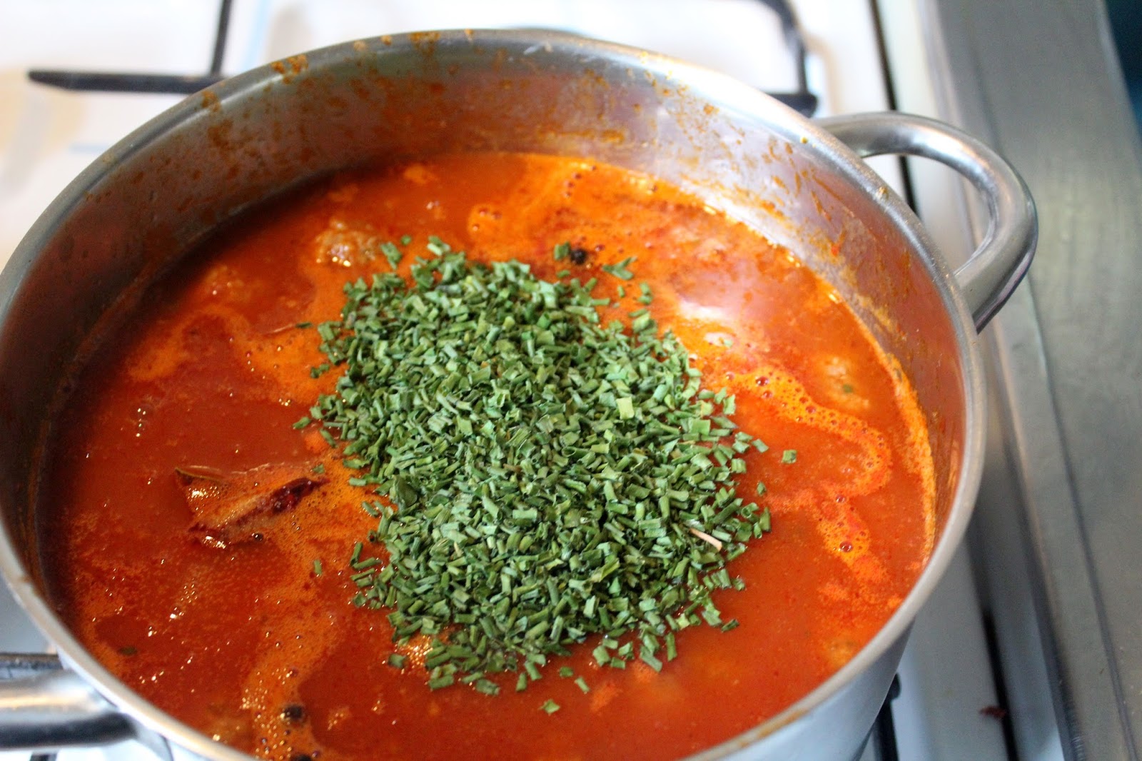 Noch ein bisschen Schnittlauch zur Soße geben, das schadet nie. Die Soße lasse ich eine Stunde auf dem Herd simmern. Die Spirelli dauern 12 Minuten und die Stelle ich quasi auf den Herd, wenn die Soße eine dreiviertel Stunde vor sich hingesimmert hat. Vor dem Servieren noch einmal testen, was Euch noch fehlt. Der Grundgeschmack ist schön aromatisch, leichte Süße vom Zucker und den Tomaten, so pikant wie Ihr mit Pfeffer und der Peperoni geschärft habe und nun stellt sich wie immer die Frage, wie salzig soll es sein? Da seid Ihr jetzt gefragt. Ich salze eigentlich nie nach, sondern habe die Richtung schon vorher so gewürzt, dass es am Ende passt.