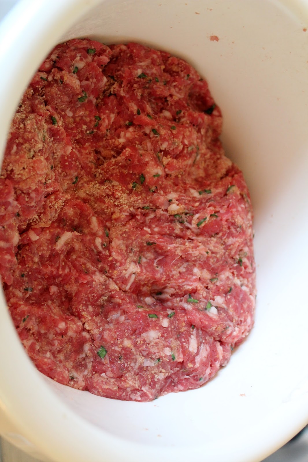 Die Fleischmasse ordentlich verkneten und ruhig noch einmal abschmecken, ob Euch die Würzung gefällt.