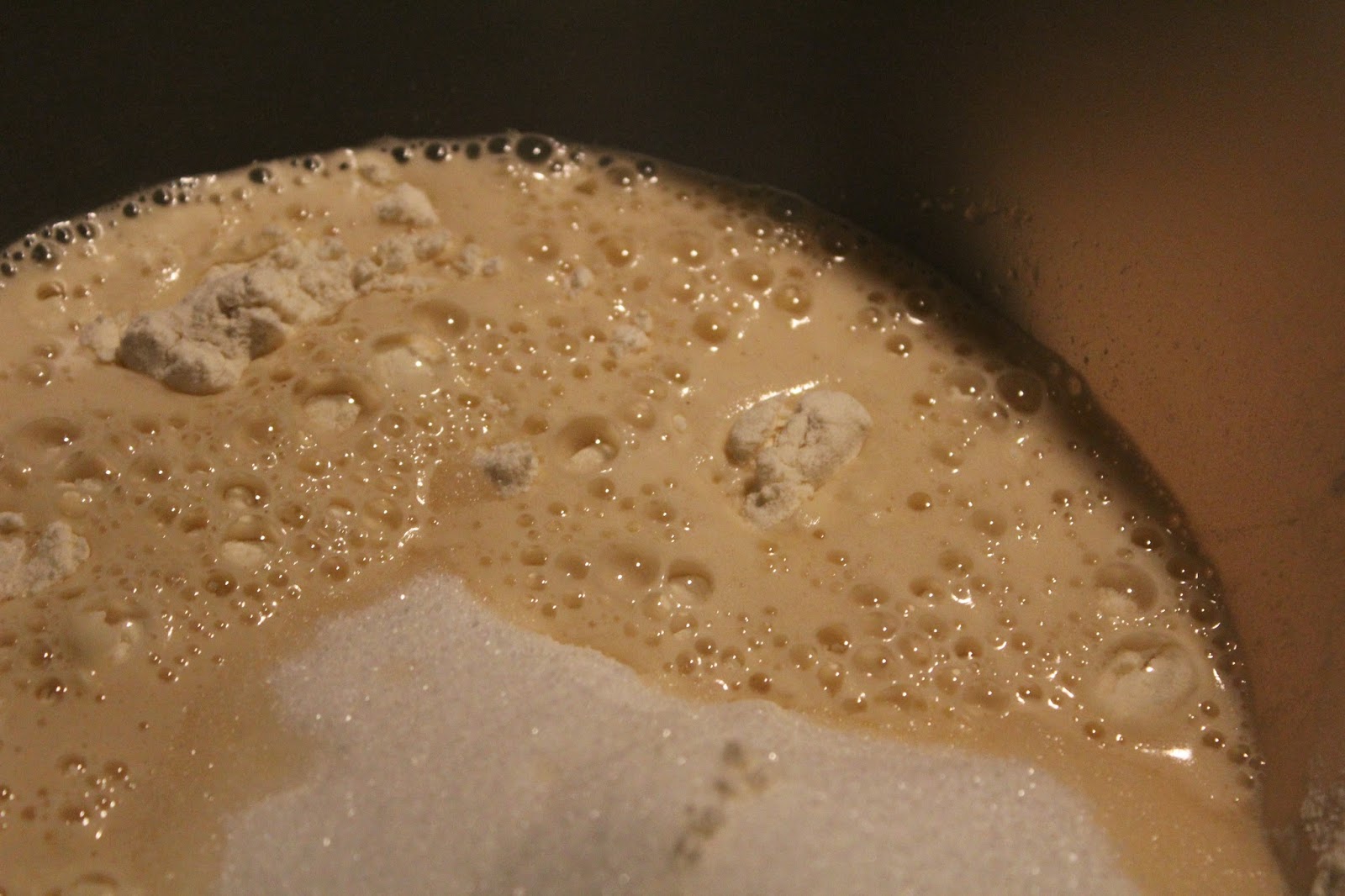 Bevor es ans Backen geht, muss man sich erstmal die Füllung basteln. Dafür wird eine Dose gezuckerte Kondensmilch zwei Stunden lang eingekocht. Für alle, die immer so schlau sind und mir erzählen, dass man das im russischen Supermarkt schon fertig kaufen kann, mal die freundliche Info, dass Ihr Euch da mal den Giftzettel auf den Dosen anschauen solltet.