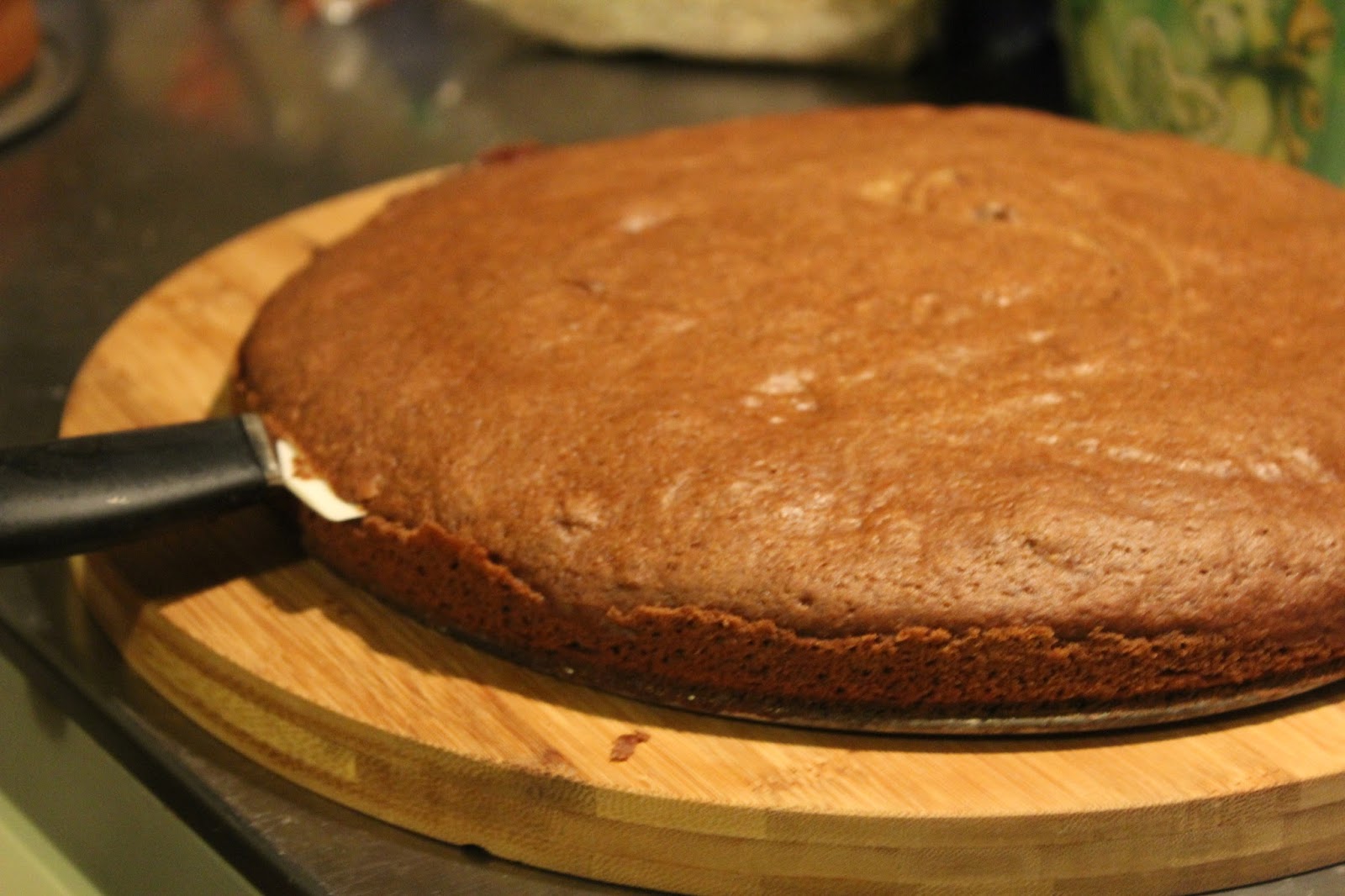 Als nächstes wird der Kuchen mit zartbitter Kuvertüre bestrichen.