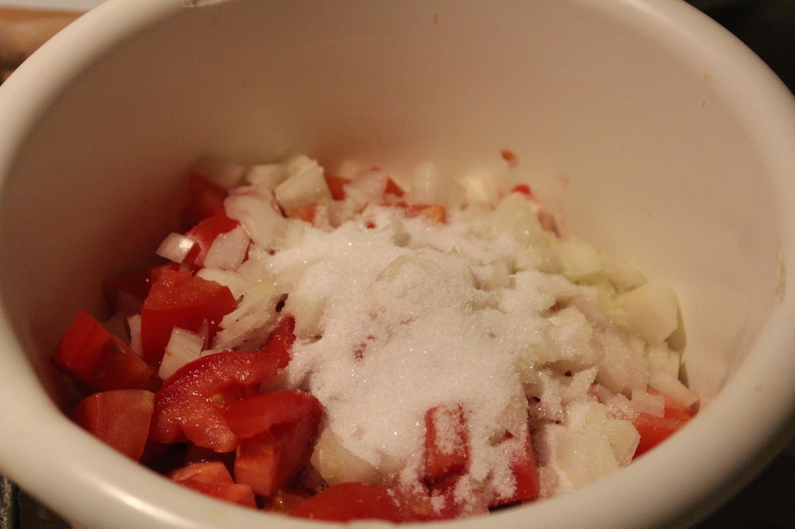 Einen ordentlicher Hieb Zucker, um den Geschmack aus den Tomaten zu ziehen.